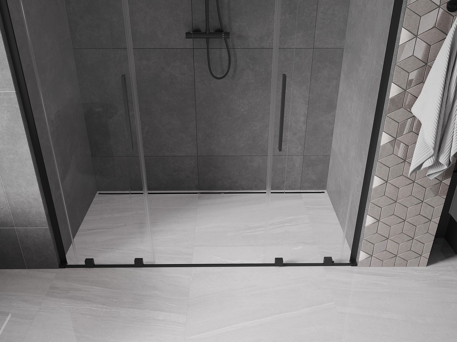 Praktický a pohodlný držiak je vyrobený z nehrdzavejúcej ocele. Módny tvar v kombinácii s povrchovou úpravou prispôsobenou farbe profilov dodáva celej konštrukcii moderný a štýlový vzhľad, podčiarkujúc estetiku každej kúpeľne.