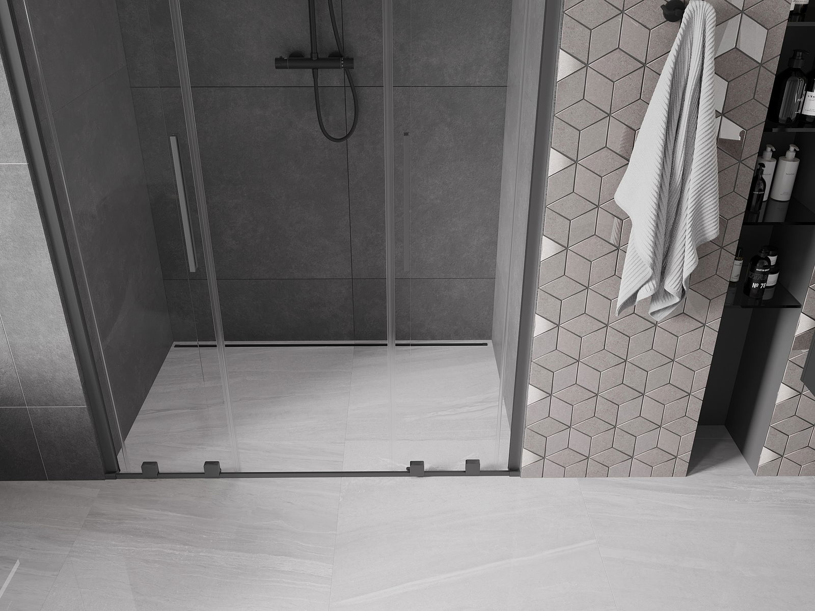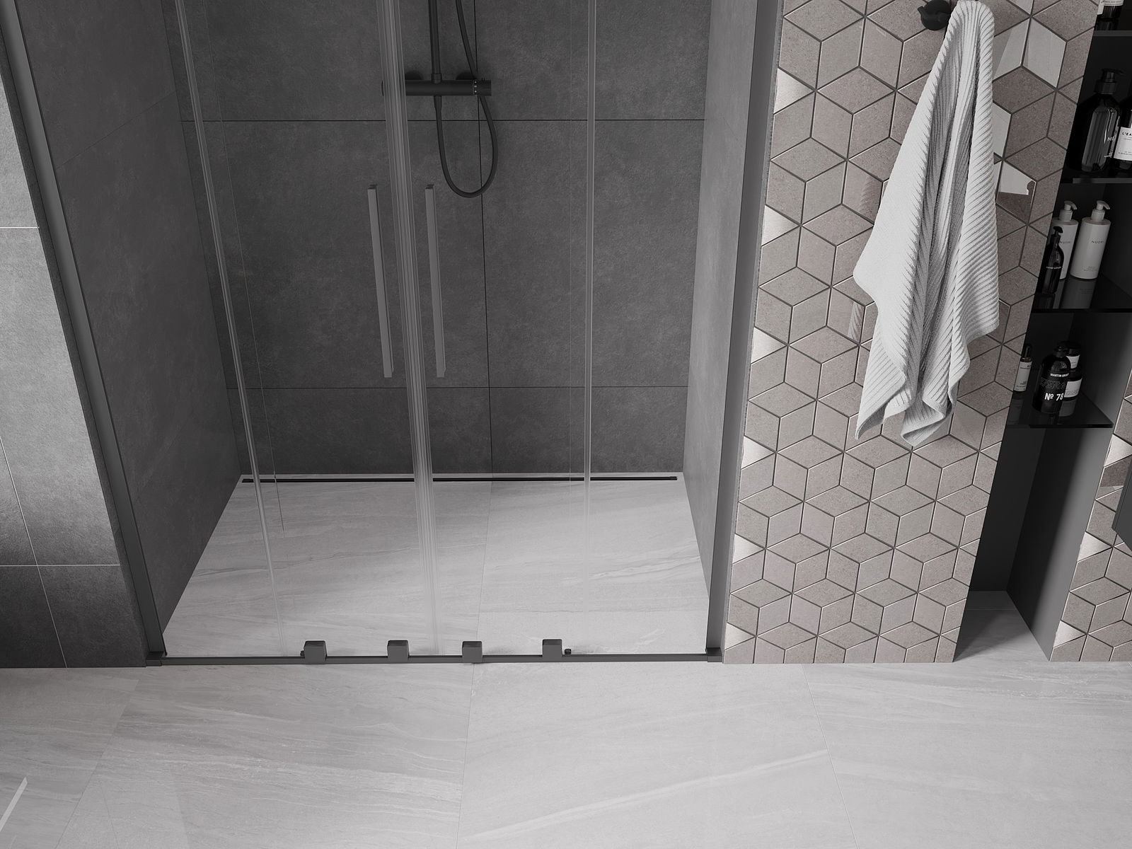 Mexen Velar L Duo posuvné sprchové dvere 150 cm, priehľadné, zbraňový kov - 871-150-003-02-95