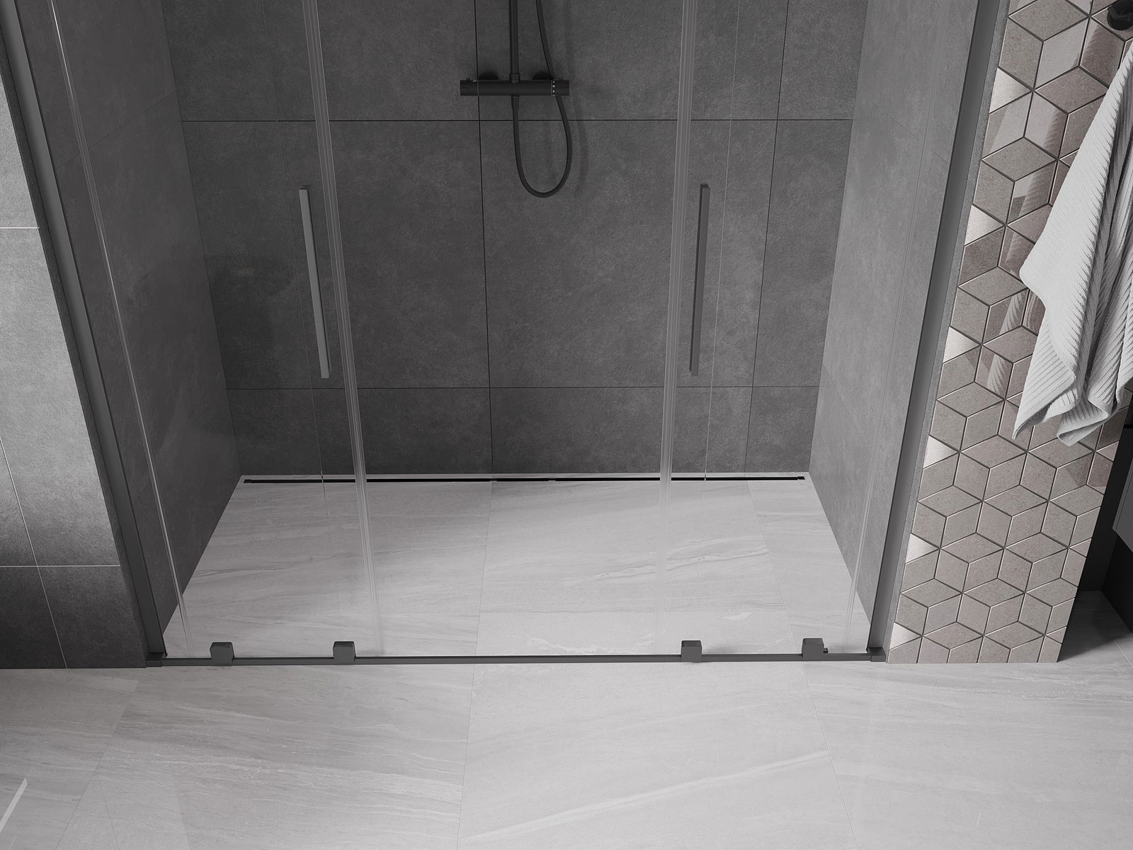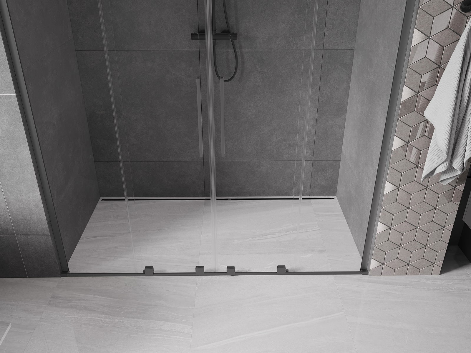 Mexen Velar L Duo posuvné sprchové dvere 200 cm, transparentné, gun metal - 871-200-003-02-95