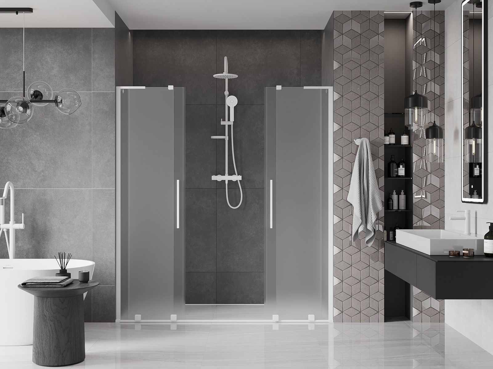 Mexen Velar L Duo posuvné sprchové dvere 180 cm, mrazivé, biele - 871-180-003-32-20