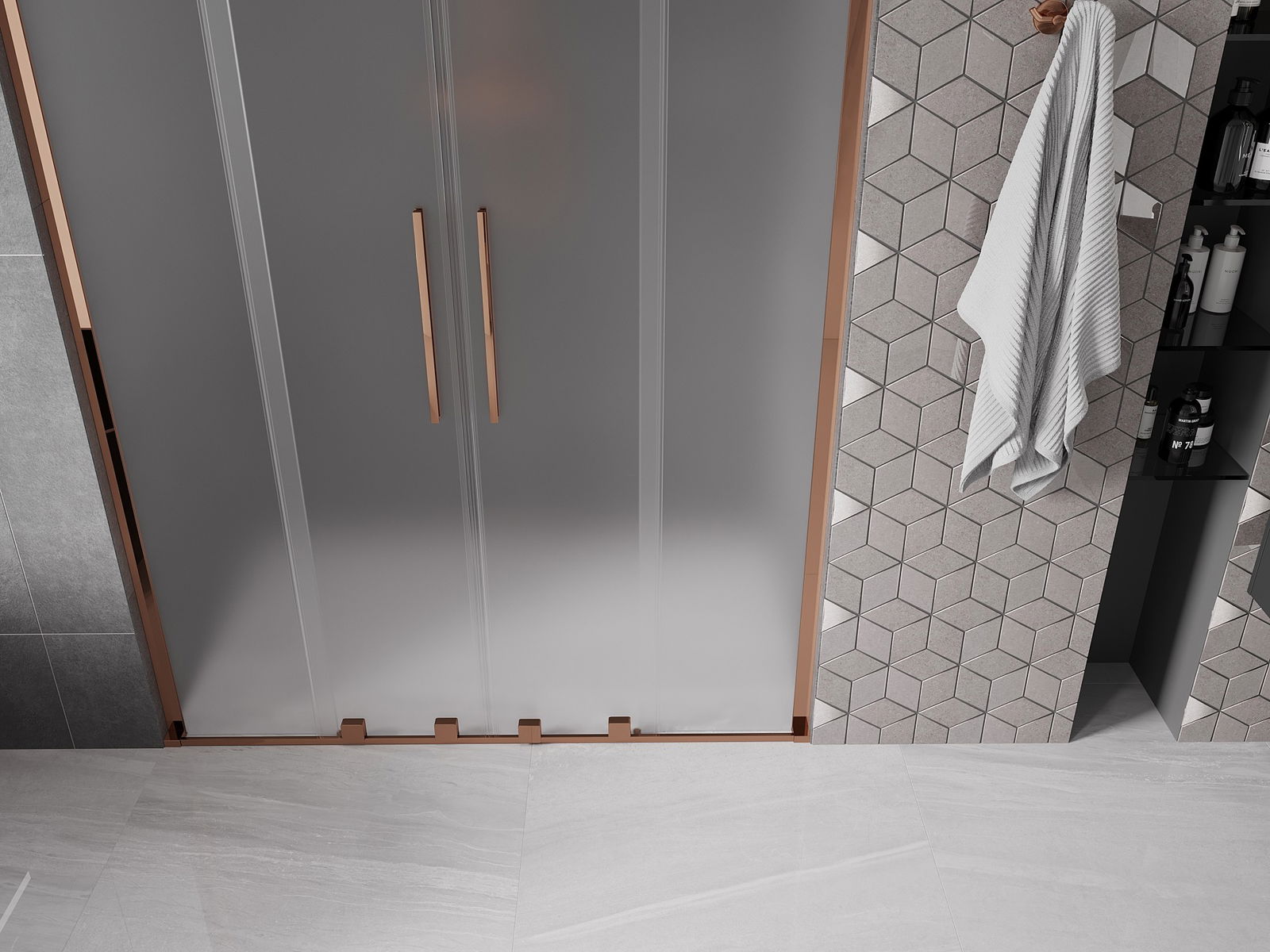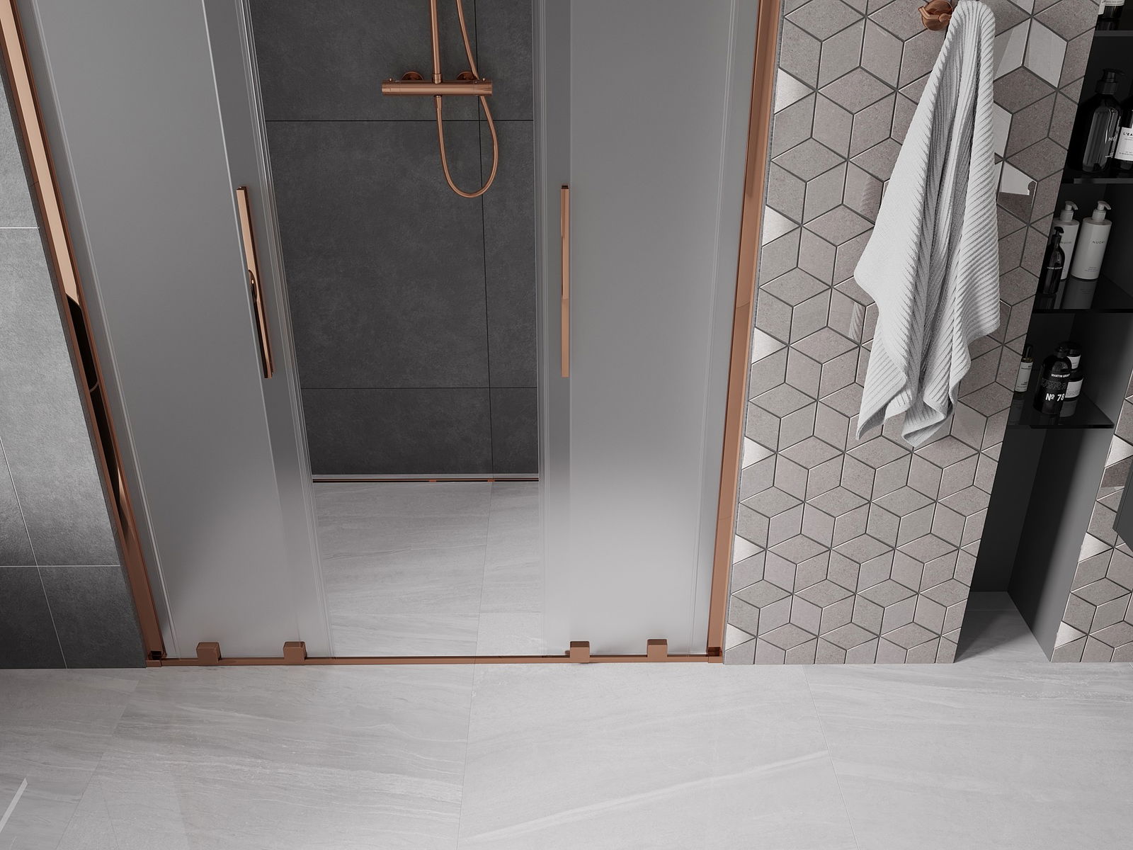 Mexen Velar L Duo posuvné sprchové dvere 150 cm, mráz, ružové zlato - 871-150-003-32-60