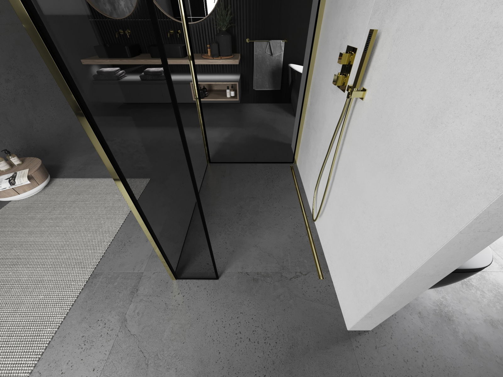 Mexen Kioto sprchová stena Walk-in 100 x 100 x 30 cm, čierny rám, zlatá - 800-100-100-221-50-70-030