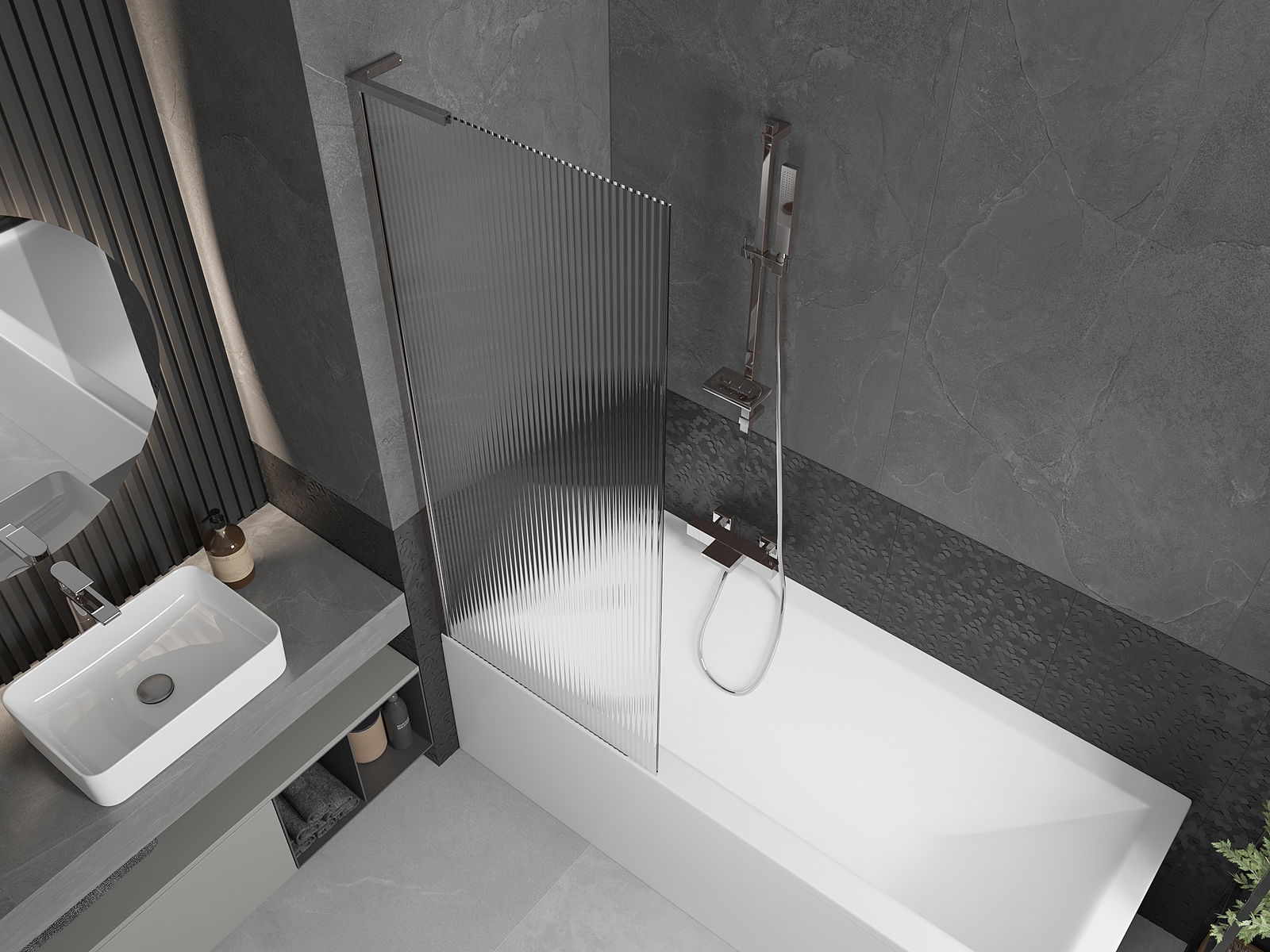 Účinná ochrana pred rozliatím vody počas kúpania. Paravan má tesnenia, ktoré sa ideálne prispôsobujú povrchu skla a okraju vane. Funkčné riešenie zaisťujúce bezpečnosť a jednoduchú údržbu čistoty.
