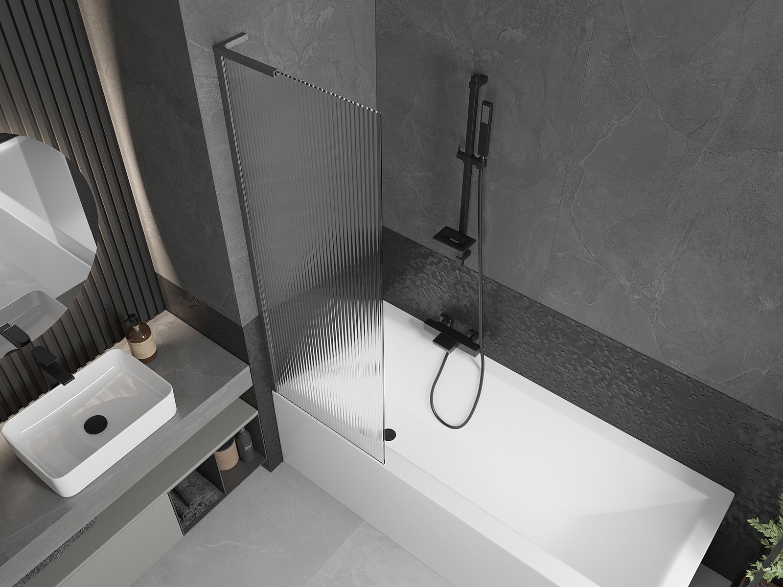 Mexen Next L vaňová zástena 1-krídlová 60 x 150 cm, prúžky, brúsená gun gray - 895-060-000-03-09-66