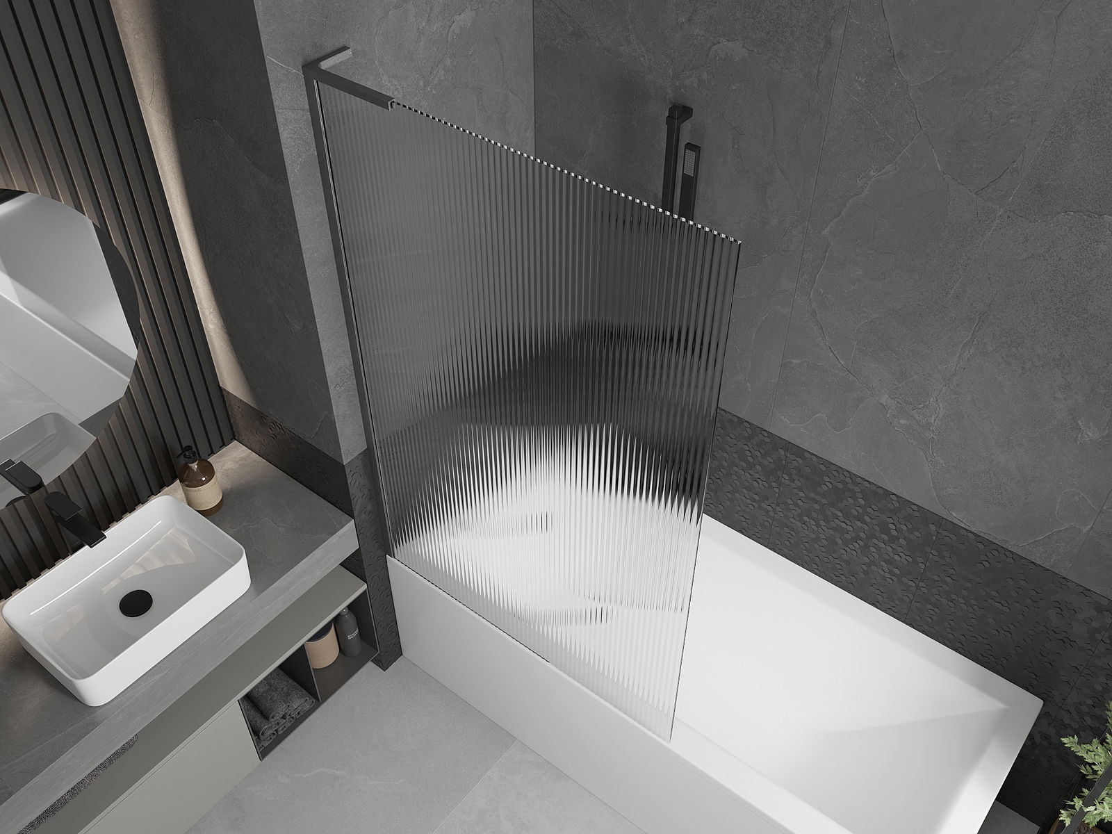 Mexen Next L vaňový paraván 1-krídlový 100 x 150 cm, prúžky, brúsená zbraňová šedá - 895-100-000-03-09-66