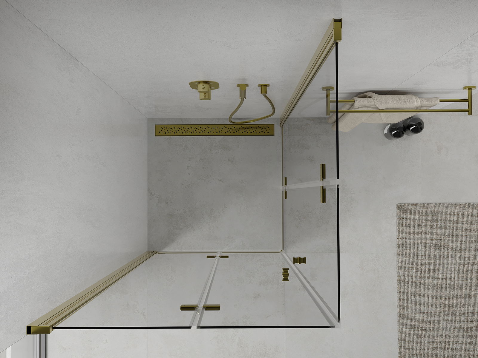 Praktická a pohodlná rukoväť je vyrobená z odolného a pevného kovu. Moderný tvar v kombinácii s povrchovou úpravou prispôsobenou farbe profilov dodáva celku moderný a štýlový vzhľad, zdôrazňujúc estetiku každej kúpeľne.