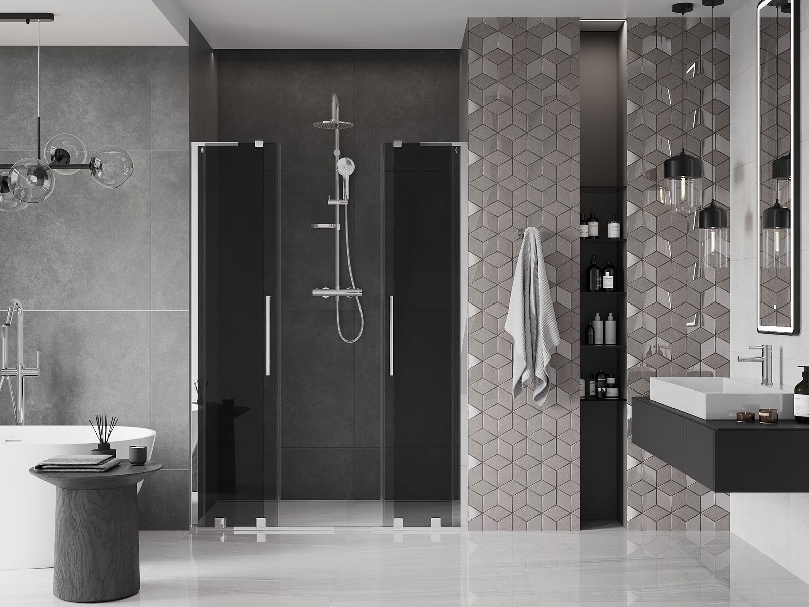 Mexen Velar L Duo posuvné sprchové dvere 140 cm, grafit, chróm - 871-140-003-42-01