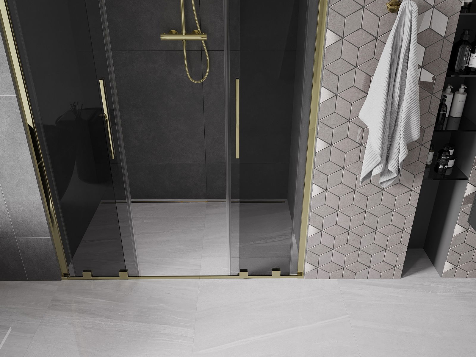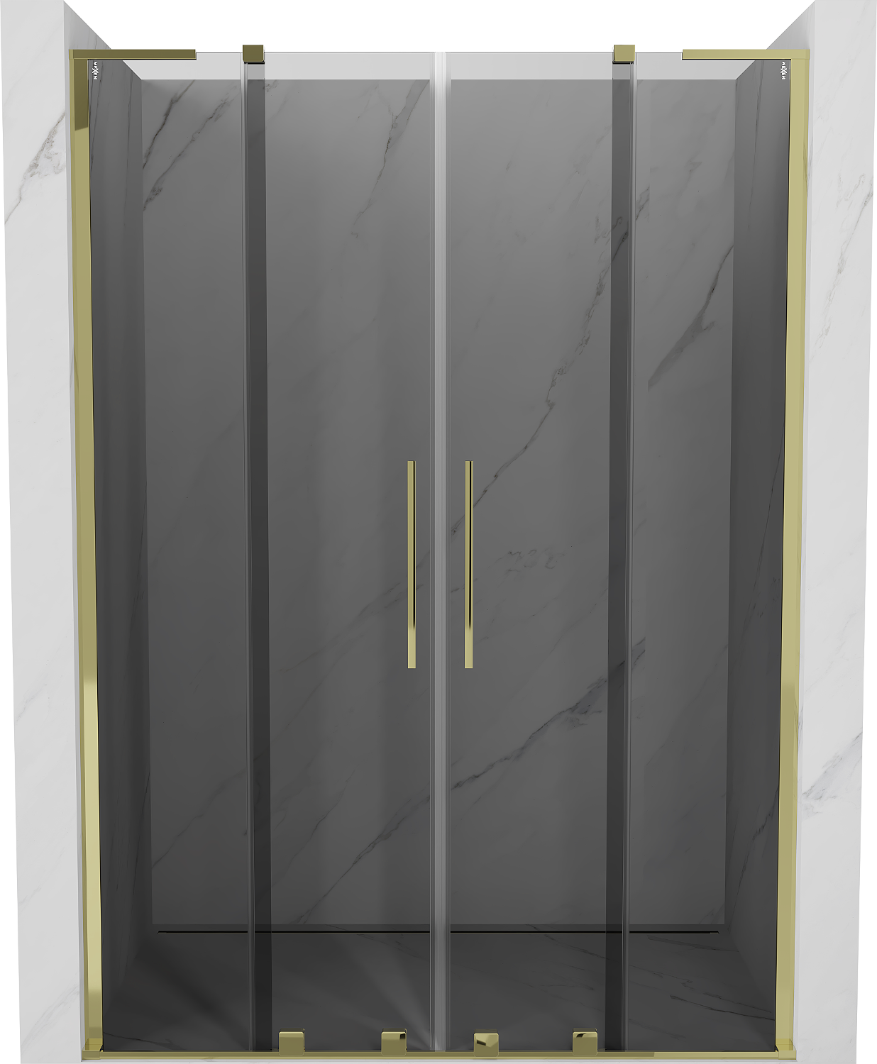 Mexen Velar L Duo posuvné sprchové dvere 150 cm, grafitové, zlaté - 871-150-003-42-50