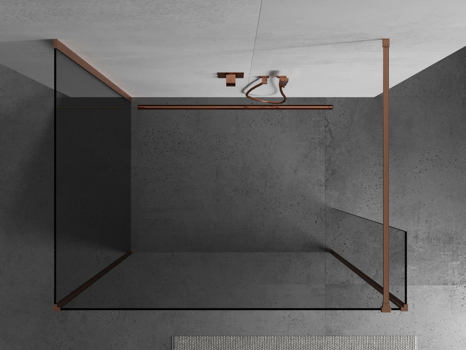 Mexen Kioto sprchová stena Walk-in 100 x 75 x 40 cm, transparentná, brúsená meď - 800-100-075-221-65-00-040