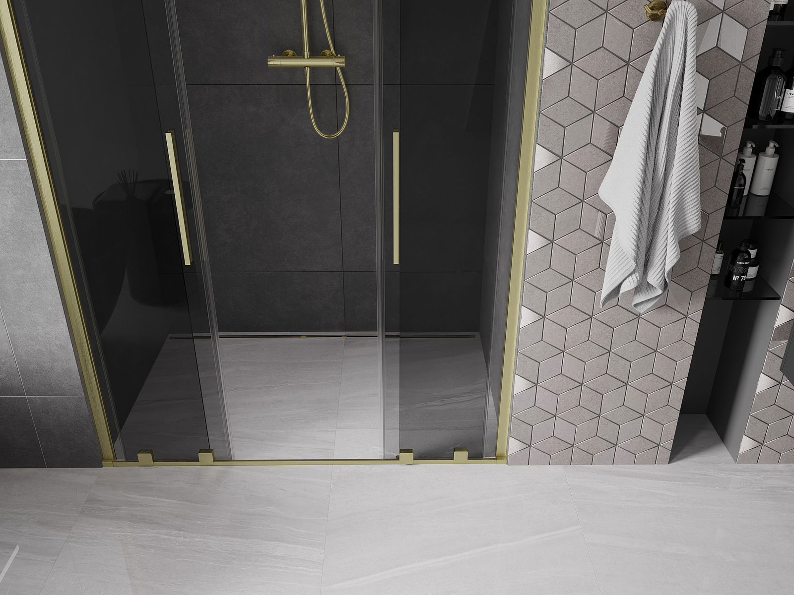 Mexen Velar L Duo sprchové dvere posuvné 140 cm, grafit, zlaté brúsené - 871-140-003-42-55