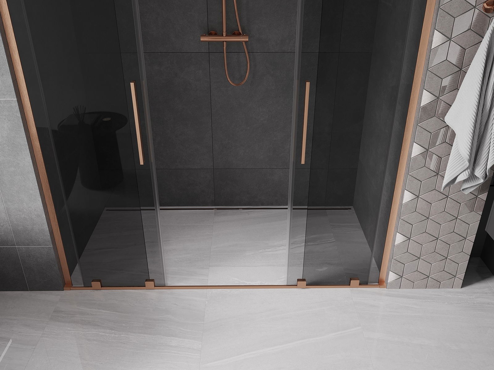 Mexen Velar L Duo sprchové dvere posuvné 200 cm, grafit, kartáčovaná meď - 871-200-003-42-65