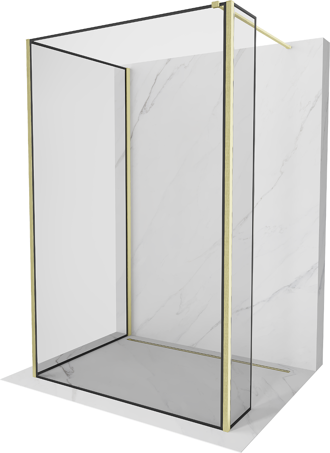 Mexen Kioto sprchová stena Walk-in 130 x 100 x 40 cm, čierny rám, zlatý kartáčovaný - 800-130-100-221-55-70-040