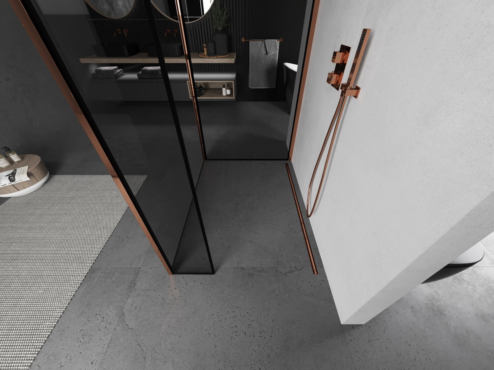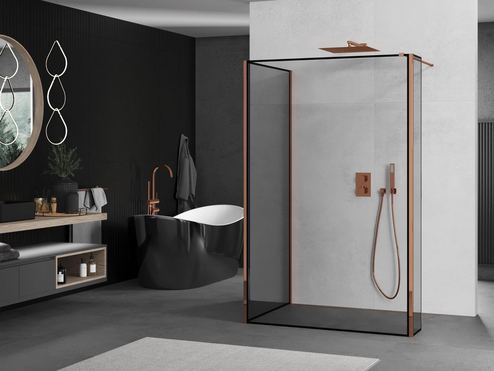 Mexen Kioto sprchová stena Walk-in 100 x 90 x 40 cm, čierny rám, ružové zlato - 800-100-090-221-60-70-040
