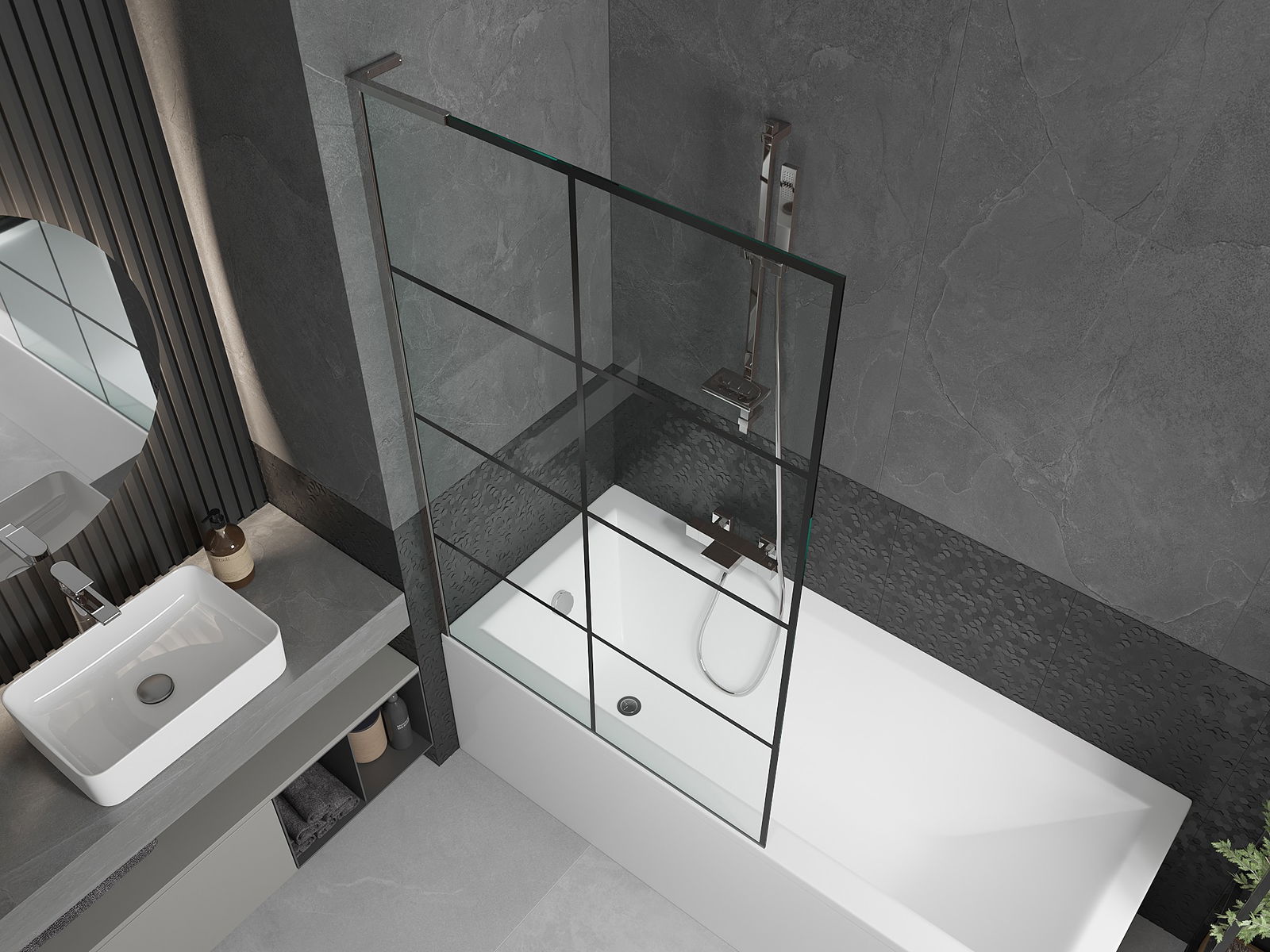 Vďaka použitiu univerzálneho montážneho systému môže byť priečka namontovaná na pravej alebo ľavej strane, podľa potreby. Týmto spôsobom môžete ľahko navrhnúť sprchu prispôsobenú priestoru kúpeľne.