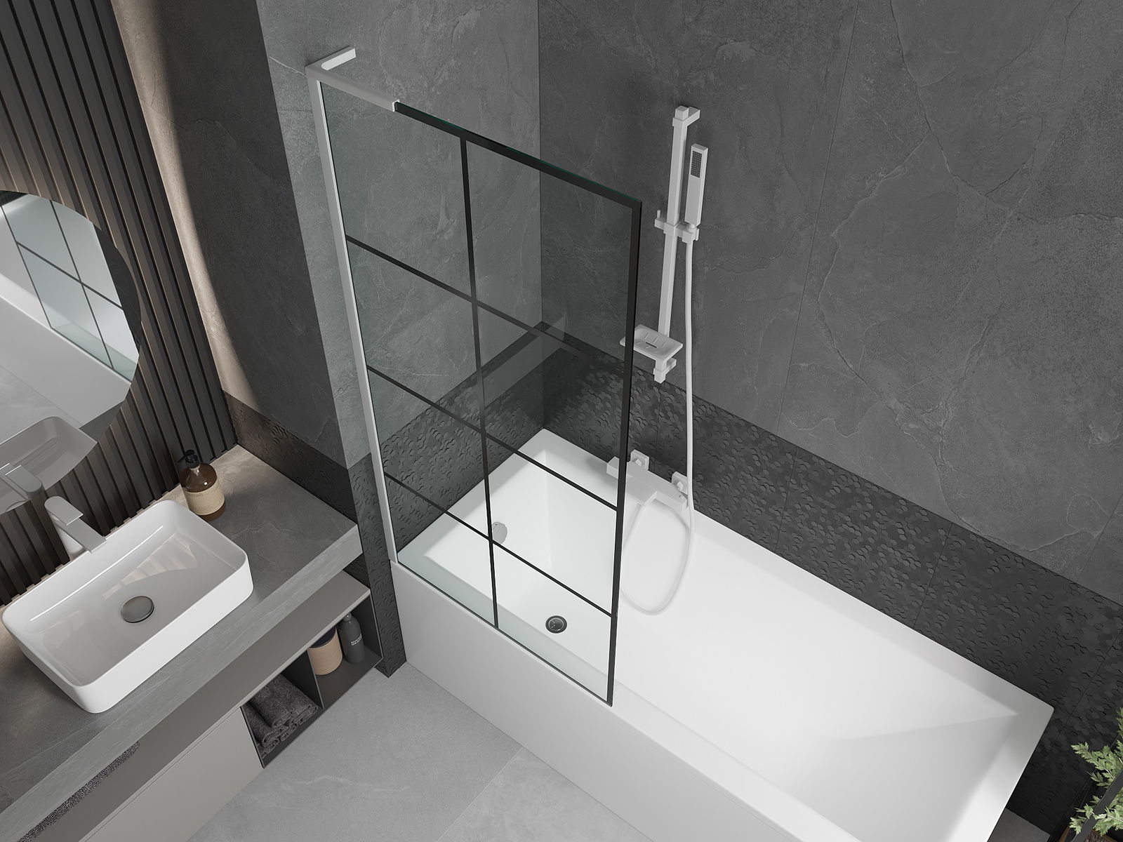 Vďaka použitiu univerzálneho montážneho systému môže byť priečka namontovaná na pravej alebo ľavej strane, podľa potreby. Týmto spôsobom môžete ľahko navrhnúť sprchu prispôsobenú priestoru kúpeľne.