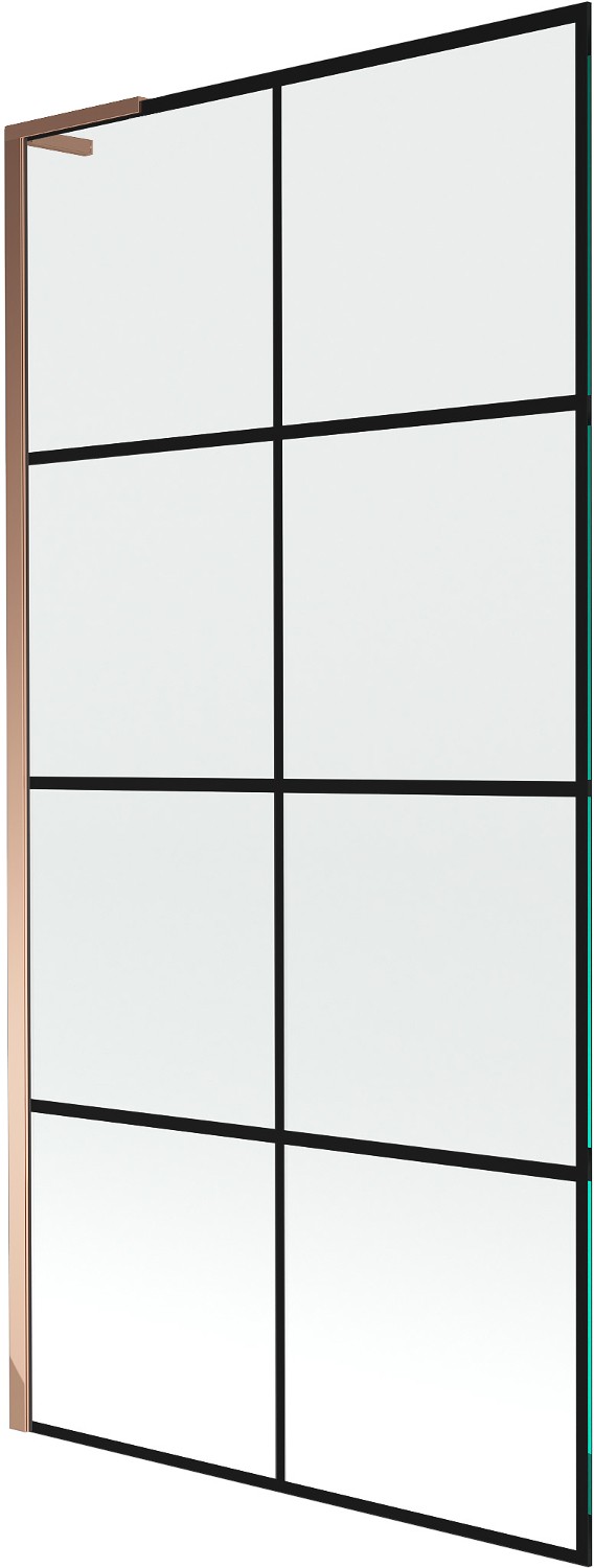 Mexen Next L sprchová zástena na vaňu, 1-krídlová 90 x 150 cm, čierna mriežka, ružové zlato - 895-090-000-03-77-60
