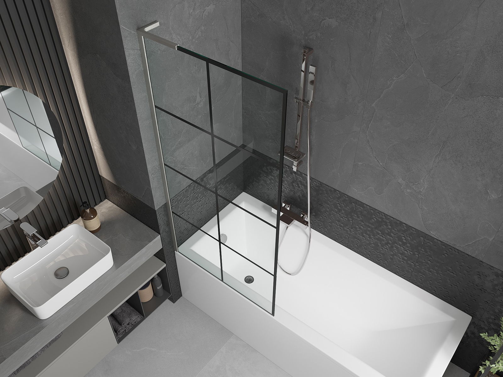 Mexen Next L vanová zástena 1-krídlová 80 x 150 cm, čierna mriežka, brúsený nikel - 895-080-000-03-77-97