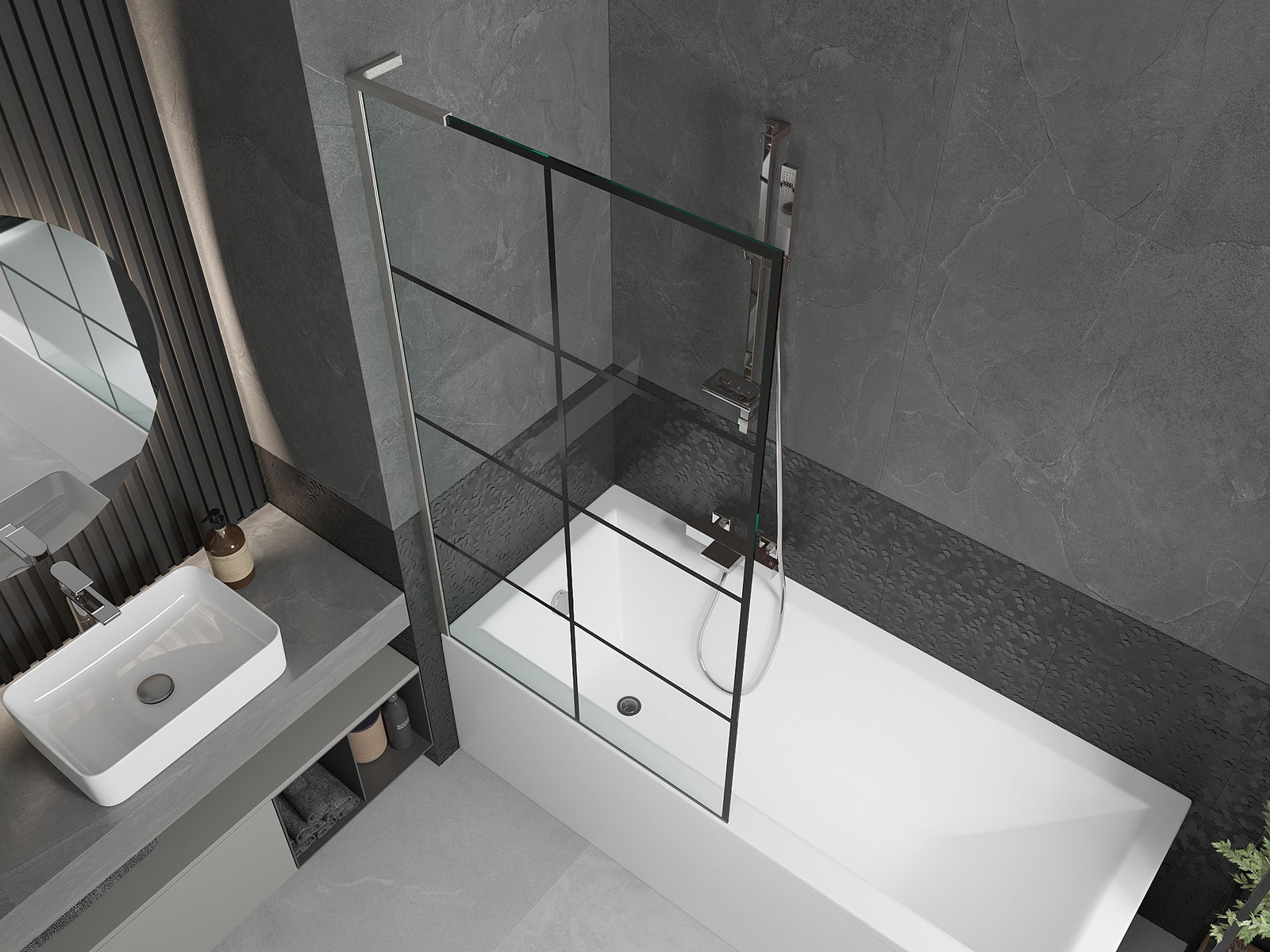 Mexen Next L vaňová zástena 1-krídlová 90 x 150 cm, čierna mriežka, brúsený nikel - 895-090-000-03-77-97