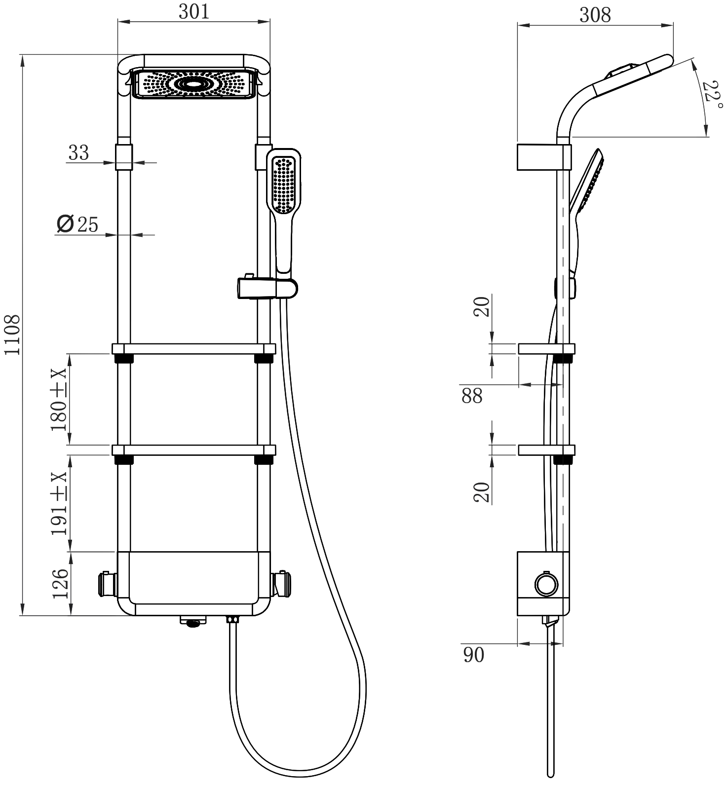Štandardný prúd vody imitujúci prirodzený dážď. Kvapky rovnomerne stekajú po tele, obopínajú ho príjemným pocitom hydratácie a umožňujú ponorenie sa do relaxačného a ukľudňujúceho zážitku počas každodenného kúpania.