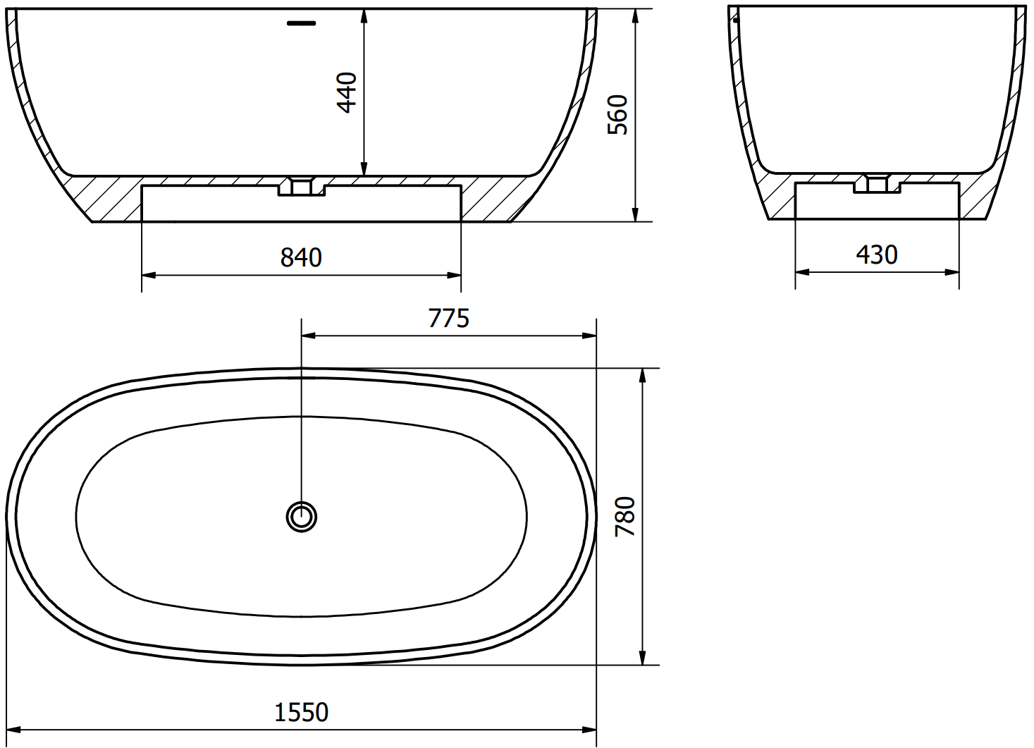 Mexen Torino voľne stojaca vaňa z konglomerátu 155 x 78 cm, biela lesk - 57271557810