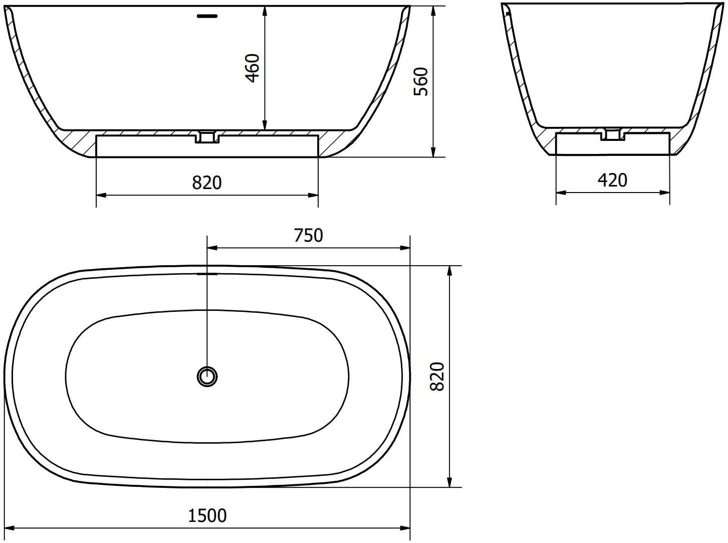 Mexen Como voľne stojaca vaňa z konglomerátu 150 x 82 cm, biela lesk - 57311508210