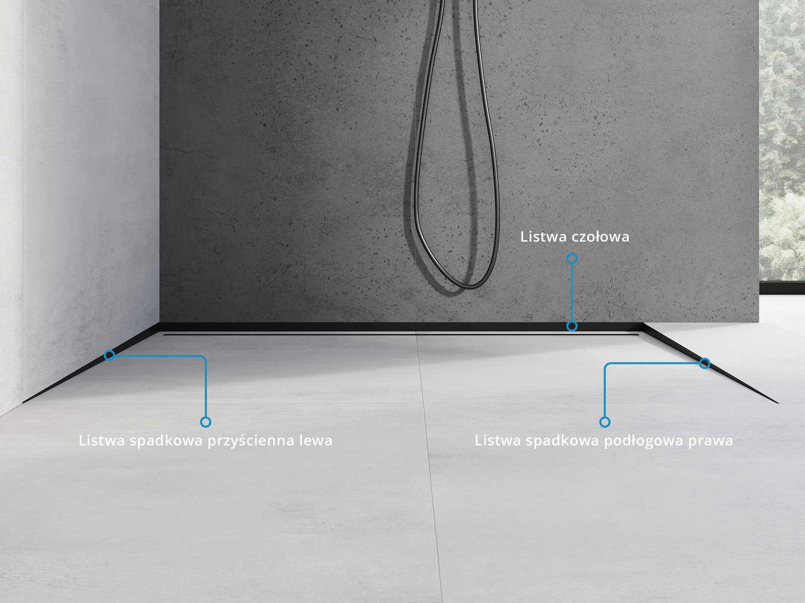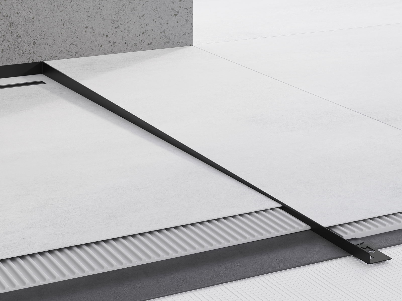 Spádová lišta má presne nastavený uhol sklonu, ktorý efektívne smeruje vodu k odtoku, čím zabraňuje jej hromadeniu na povrchu podlahy. Vďaka tomu je voda efektívne odvádzaná, čo minimalizuje riziko vzniku kaluží a zabezpečuje suchý a bezpečný povrch.