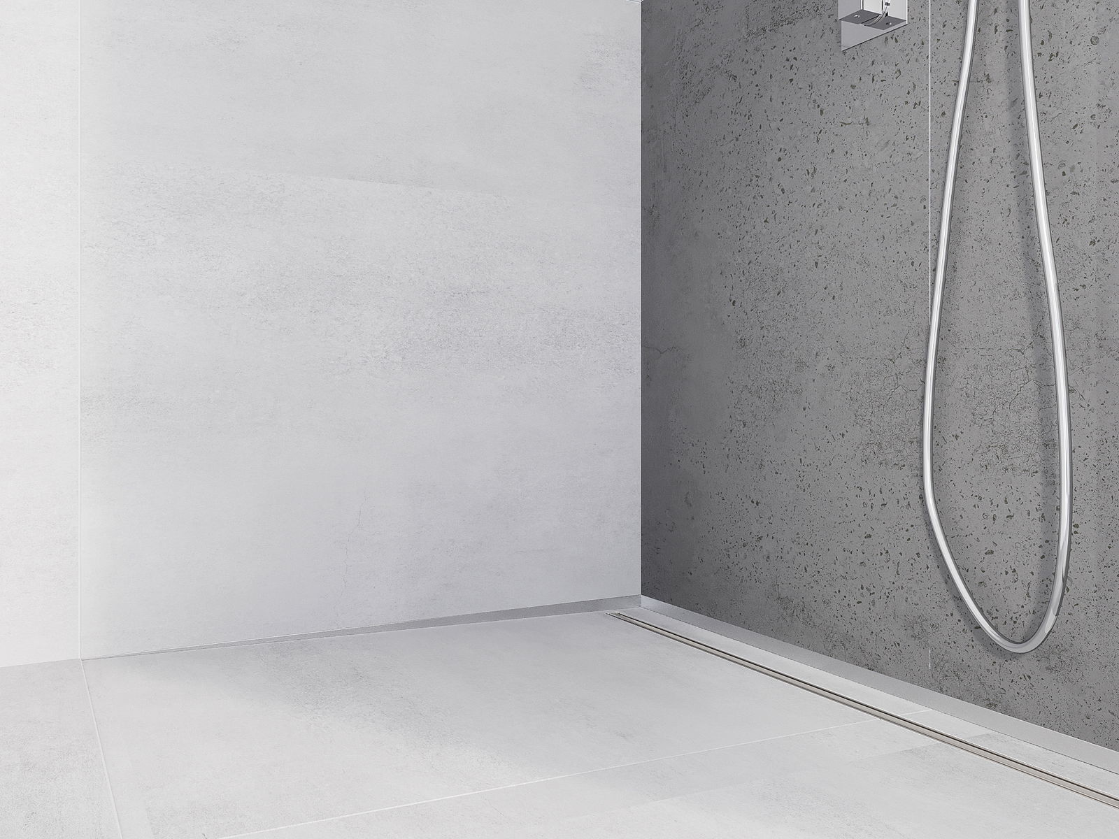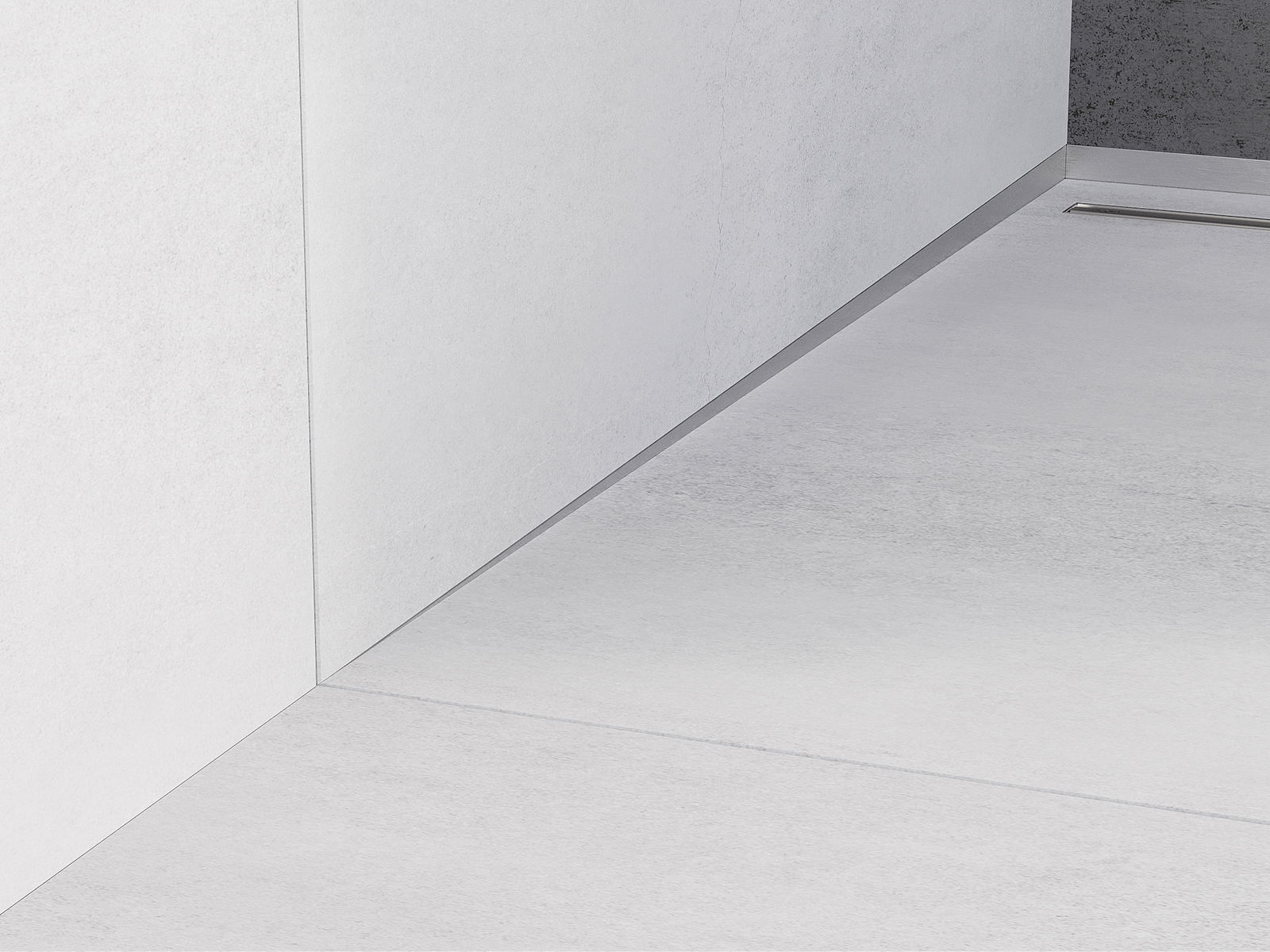 Spádová lišta má presne nastavený uhol sklonu, ktorý efektívne smeruje vodu k odtoku, čím zabraňuje jej hromadeniu na povrchu podlahy. Vďaka tomu je voda efektívne odvádzaná, čo minimalizuje riziko vzniku kaluží a zabezpečuje suchý a bezpečný povrch.