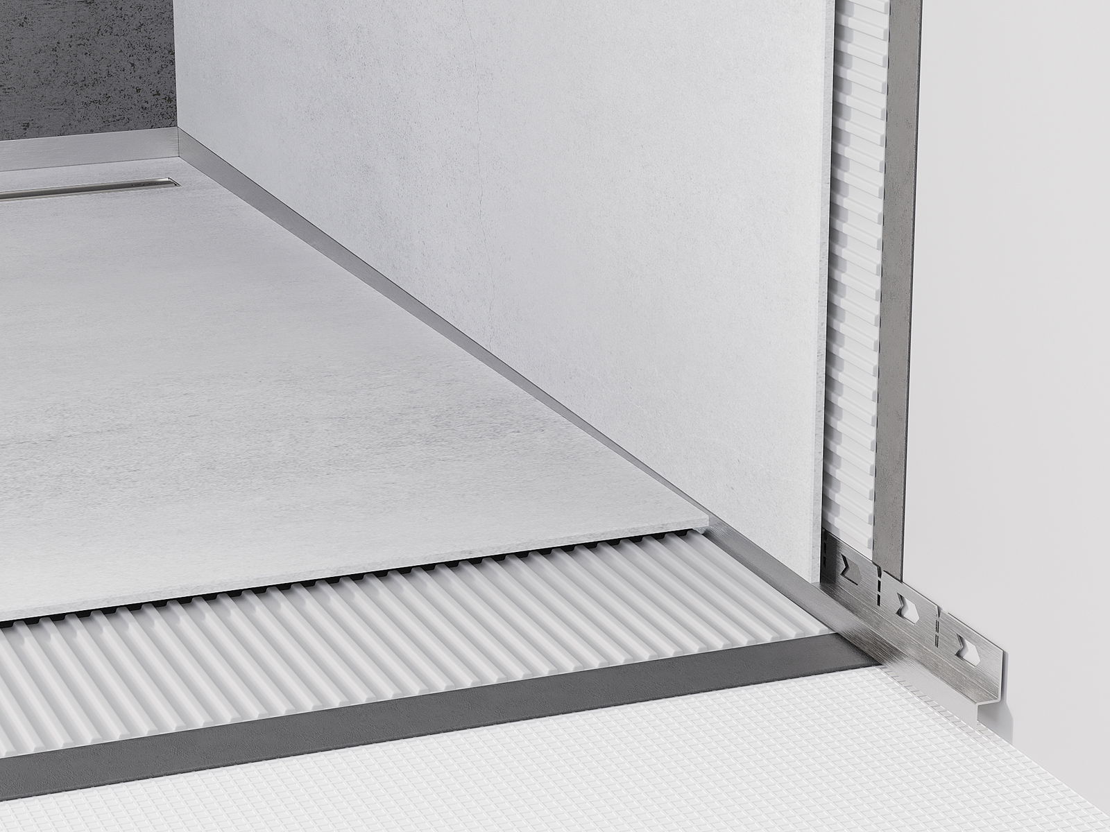Spádová lišta má presne nastavený uhol sklonu, ktorý efektívne smeruje vodu k odtoku, čím zabraňuje jej hromadeniu na povrchu podlahy. Vďaka tomu je voda efektívne odvádzaná, čo minimalizuje riziko vzniku kaluží a zabezpečuje suchý a bezpečný povrch.