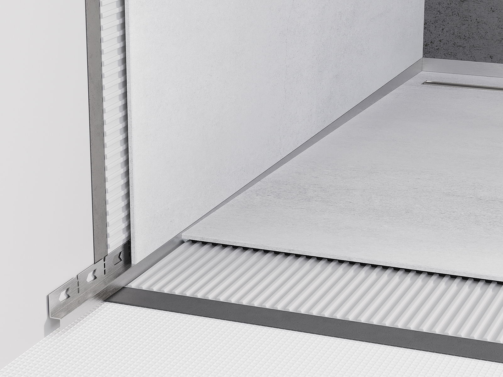 Spádová lišta má presne nastavený uhol sklonu, ktorý efektívne smeruje vodu k odtoku, čím zabraňuje jej hromadeniu na povrchu podlahy. Vďaka tomu je voda efektívne odvádzaná, čo minimalizuje riziko vzniku kaluží a zabezpečuje suchý a bezpečný povrch.