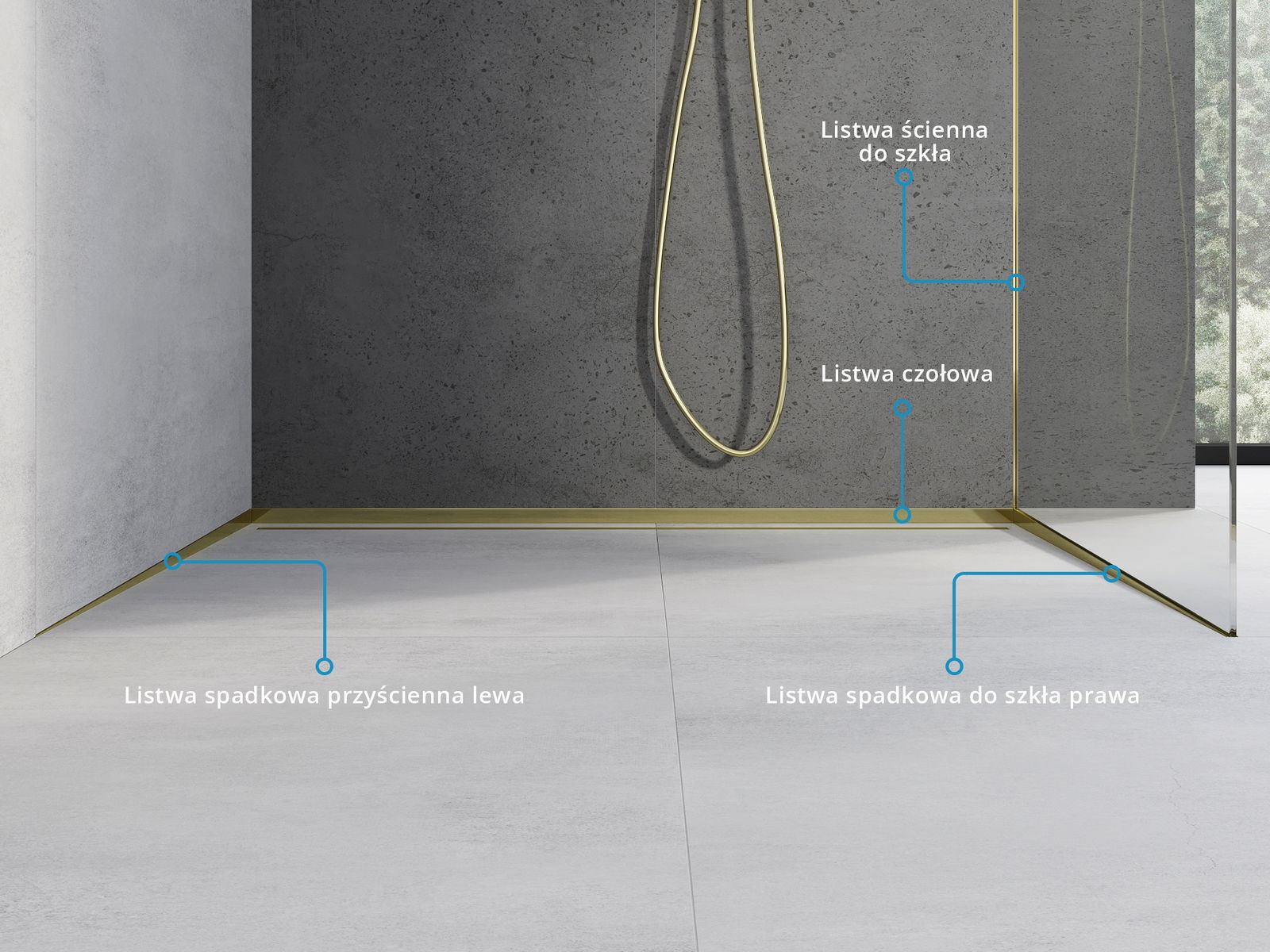 Bočná hrana lišty zaisťuje jednostranný spád k líniovému odtoku bez nutnosti vykonania tzv. obálky