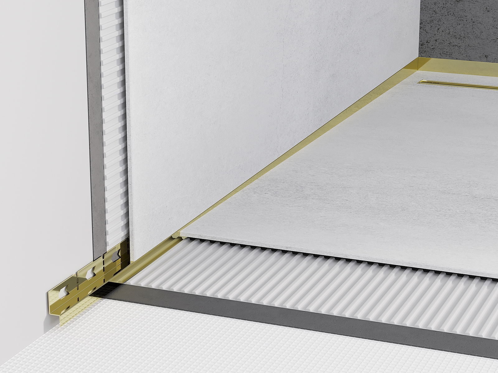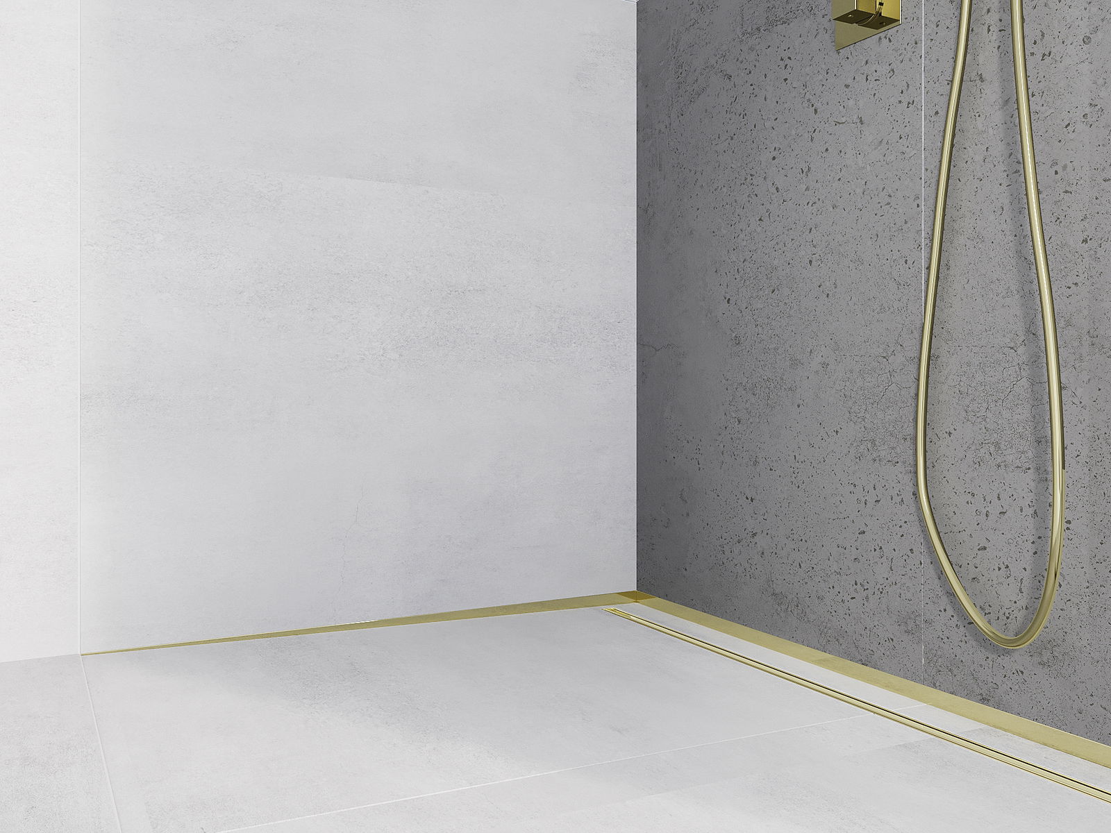 Spádová lišta má presne nastavený uhol sklonu, ktorý efektívne smeruje vodu k odtoku, čím zabraňuje jej hromadeniu na povrchu podlahy. Vďaka tomu je voda efektívne odvádzaná, čo minimalizuje riziko vzniku kaluží a zabezpečuje suchý a bezpečný povrch.