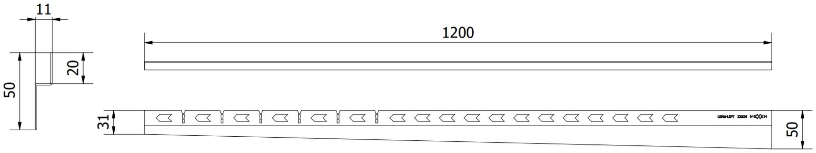 Bočná hrana lišty umožňuje jednosmerný spád k líniovému odtoku bez potreby vykonávania tzv. obálky