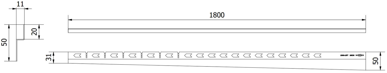 Bočný okraj lišty spôsobuje jednostranný spád k líniovému odtoku bez potreby vykonávania tzv. obálky