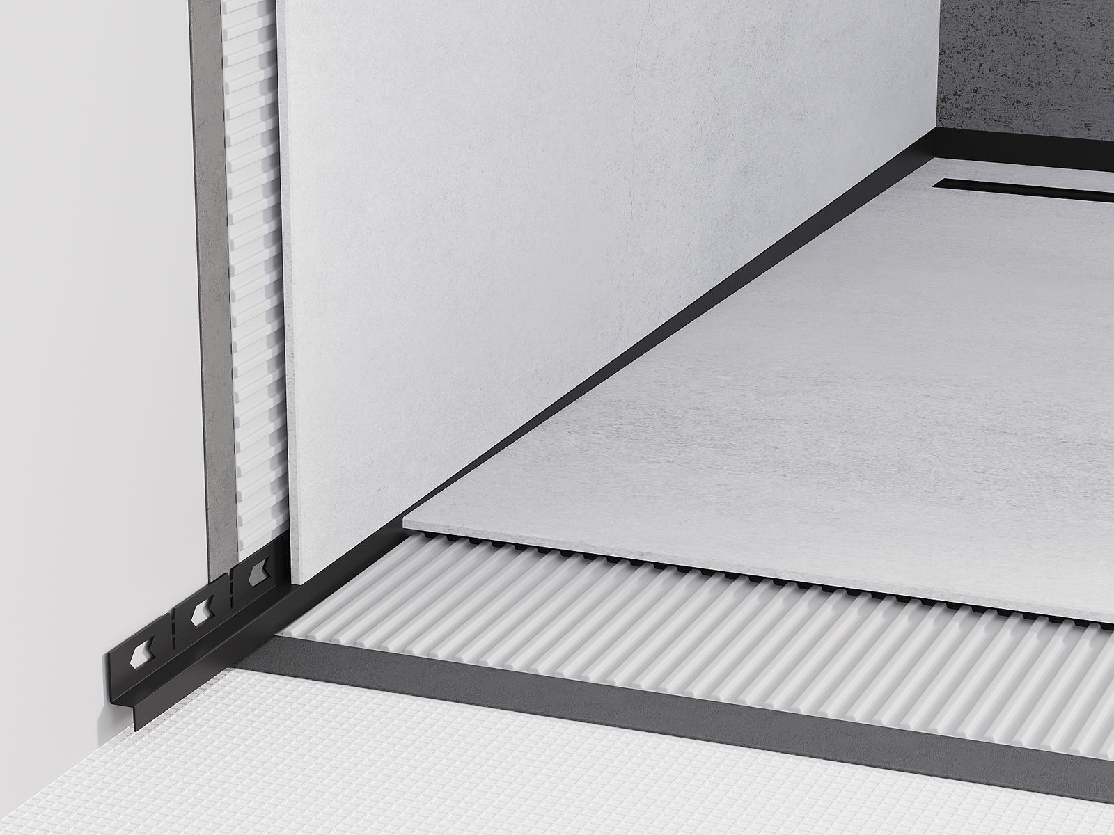 Spádová lišta má presne nastavený uhol sklonu, ktorý efektívne smeruje vodu k odtoku, čím zabraňuje jej hromadeniu na povrchu podlahy. Vďaka tomu je voda efektívne odvádzaná, čo minimalizuje riziko vzniku kaluží a zabezpečuje suchý a bezpečný povrch.