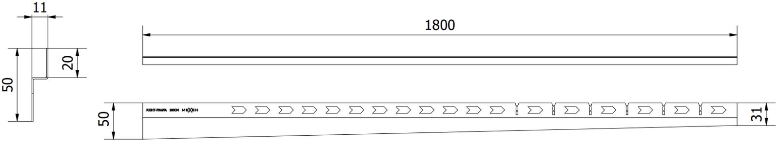 Bočný okraj lišty zabezpečuje jednostranný spád k lineárnemu odtoku bez nutnosti vytvárania tzv. obálky