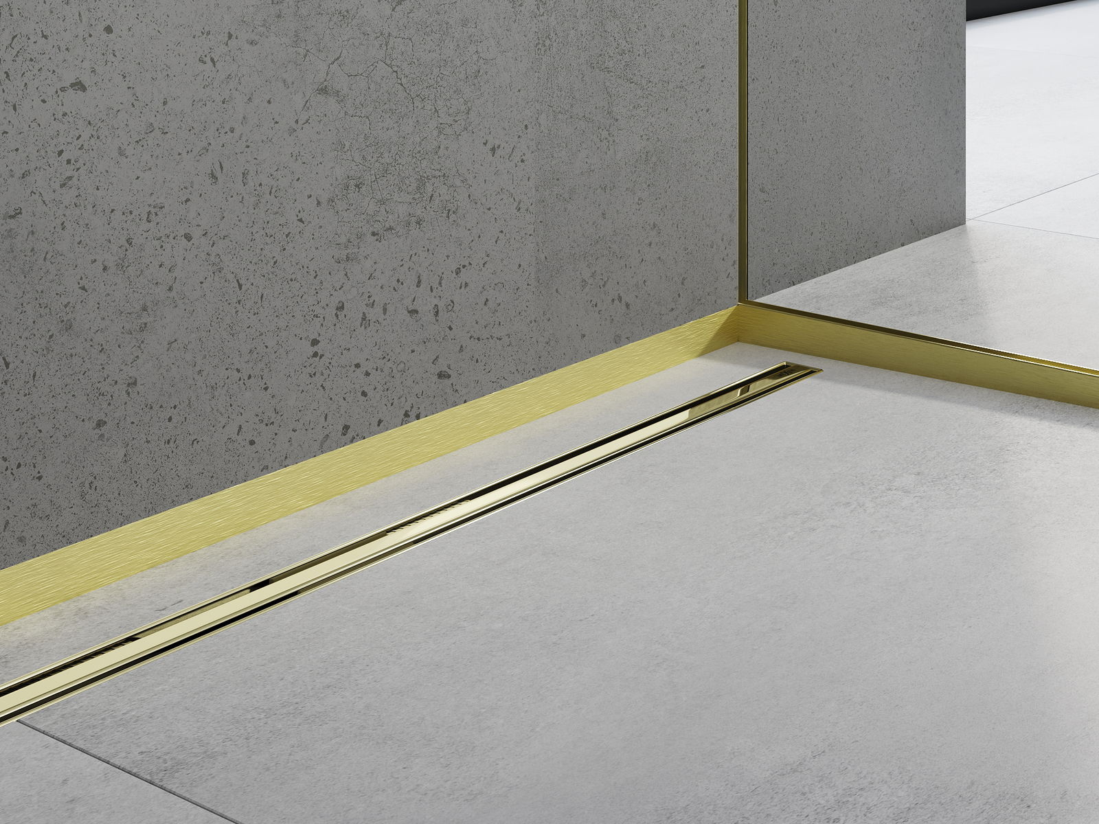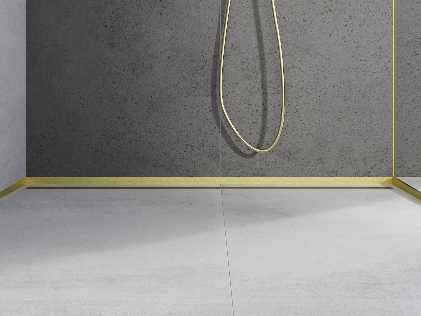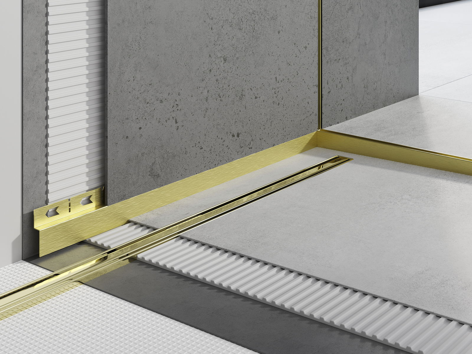 Čelná lišta dopĺňa použitie spádových líšt, čím vytvára súvislý celok v sprchovom priestore