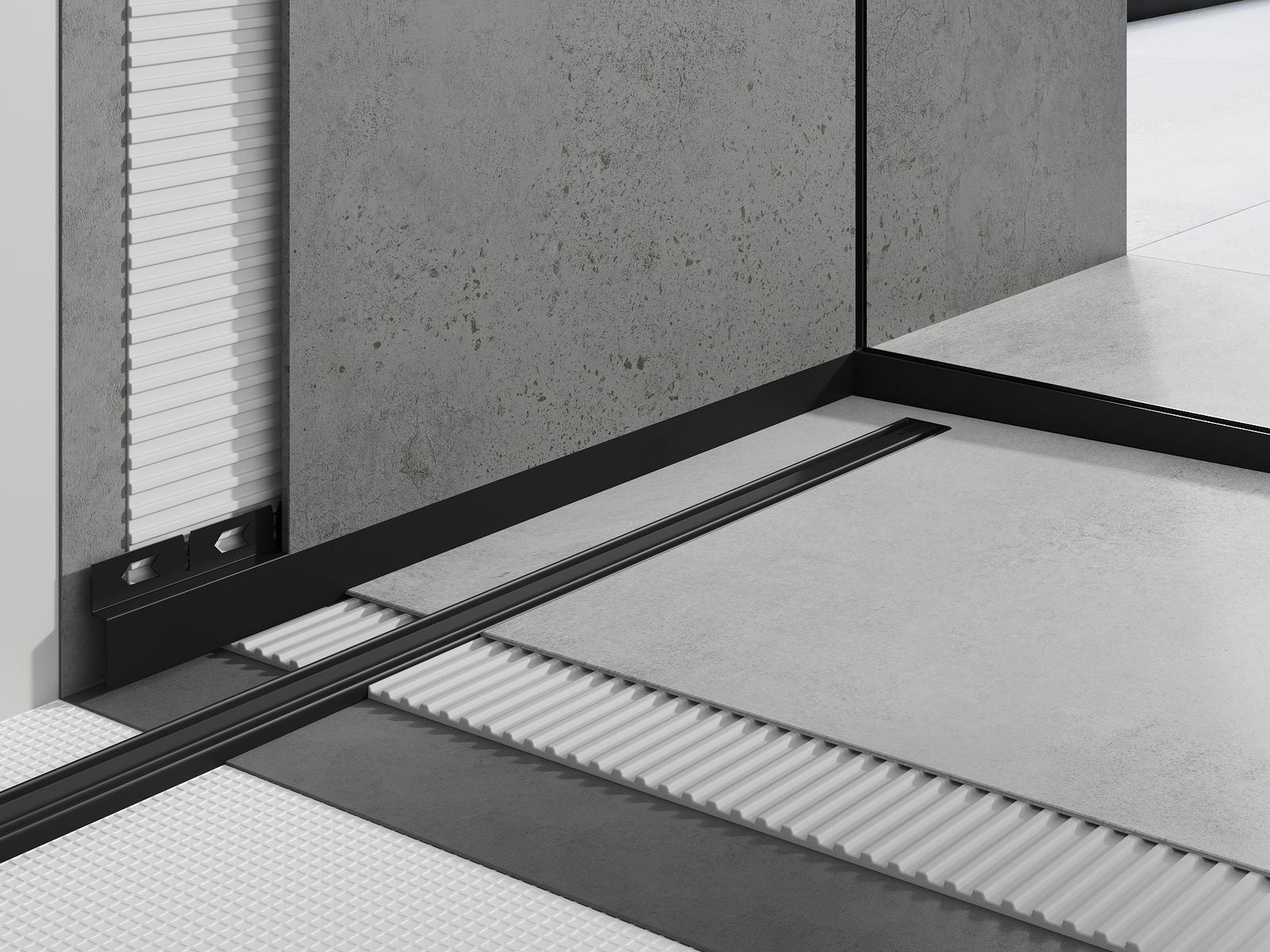 Čelná lišta je doplnkom pri použití spádových lišt, čím vytvára súdržný celok v sprchovacím priestore