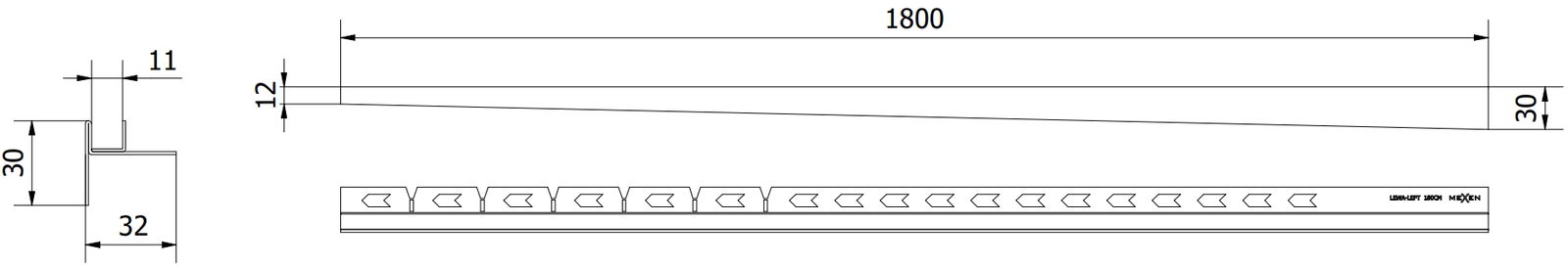 Bočná hrana lišty spôsobuje jednostranný spád k líniovému odtoku bez nutnosti vytvárania tzv. obálky