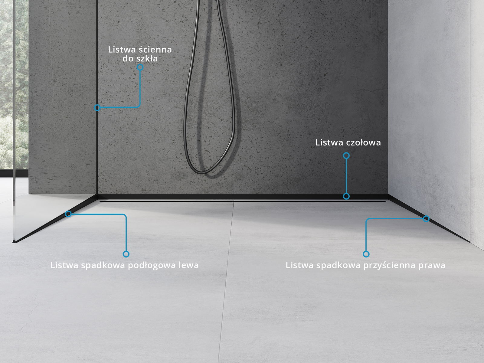 Spádová lišta má presne nastavený uhol sklonu, ktorý efektívne smeruje vodu k odtoku, čím zabraňuje jej hromadeniu na povrchu podlahy. Vďaka tomu je voda efektívne odvádzaná, čo minimalizuje riziko vzniku kaluží a zabezpečuje suchý a bezpečný povrch.