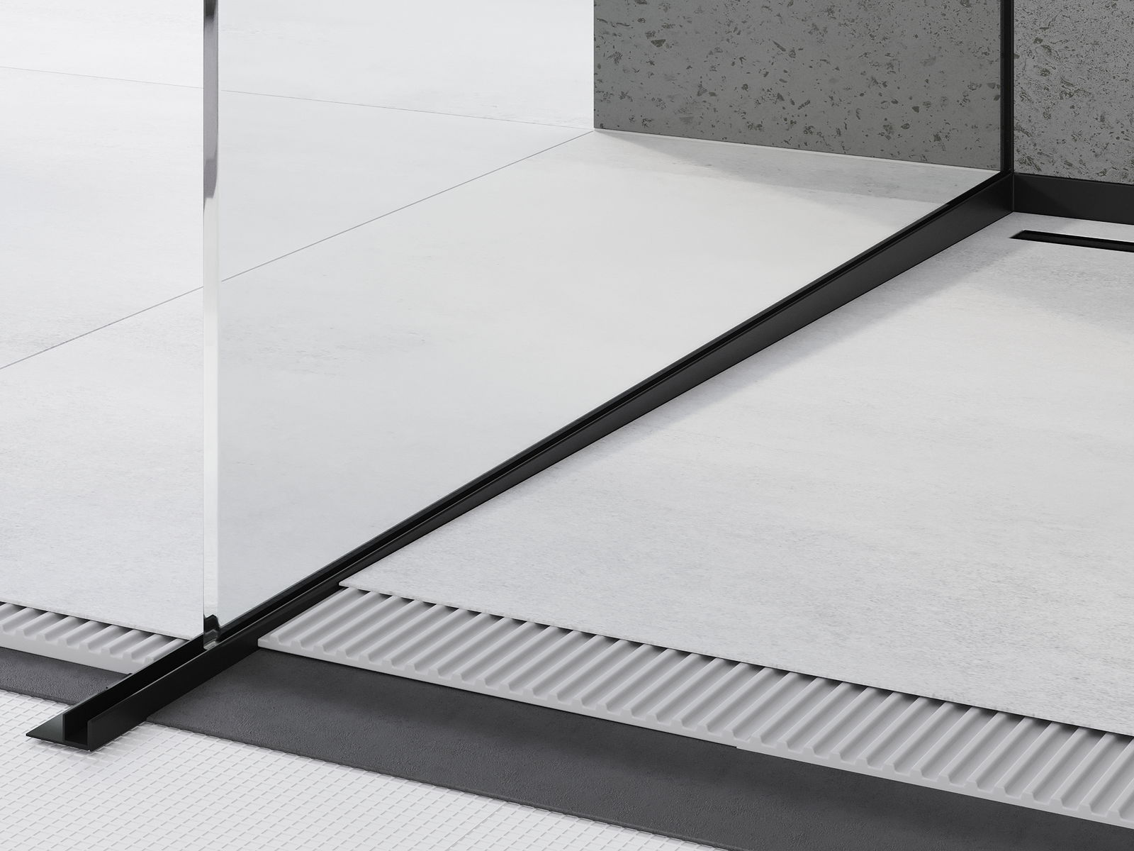 Profil má miesto pre montáž sprchovej zásteny, čo nielen uľahčuje proces inštalácie, ale tiež umožňuje zakryť povrchovú úpravu silikónom