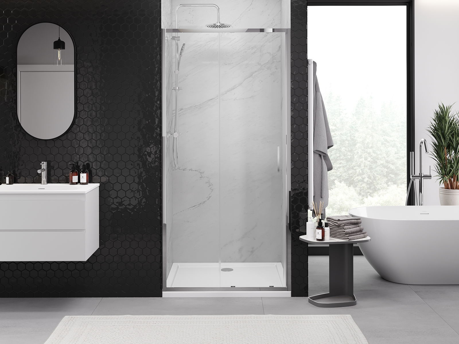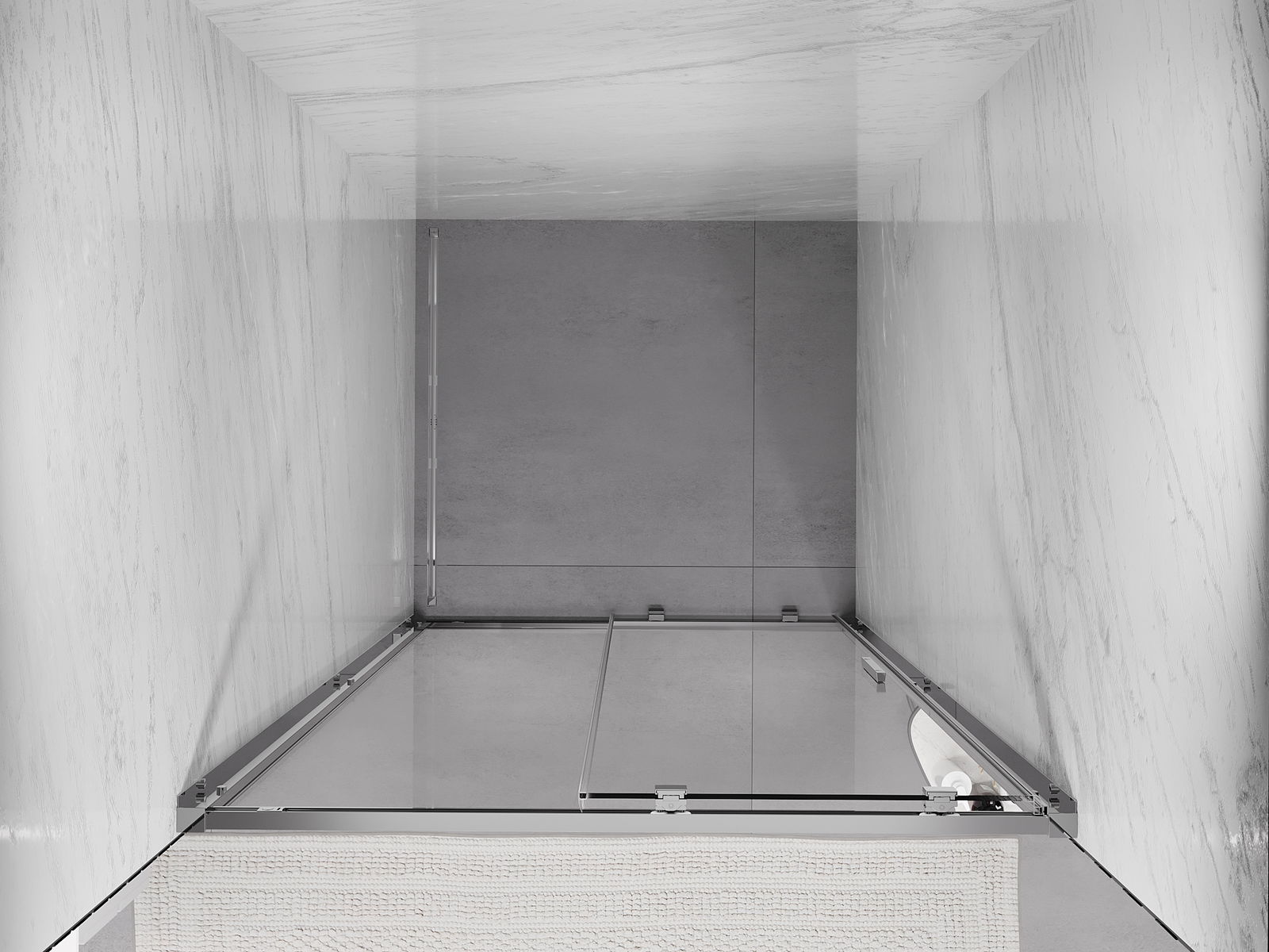 Posuvné dvere sa pohybujú po špeciálnych koľajniciach a nevyžadujú dodatočný priestor na otvorenie, preto sú ideálne pre menšie kúpeľne. Vďaka dvojitým kolieskam s kovovým telom je ich pohyb plynulý.