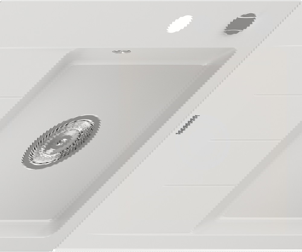 Mexen Ben Granitový kuchynský drez 1-komorový s odkvapkávačom, pravý 600 x 500 mm, biely, chrómový sifón