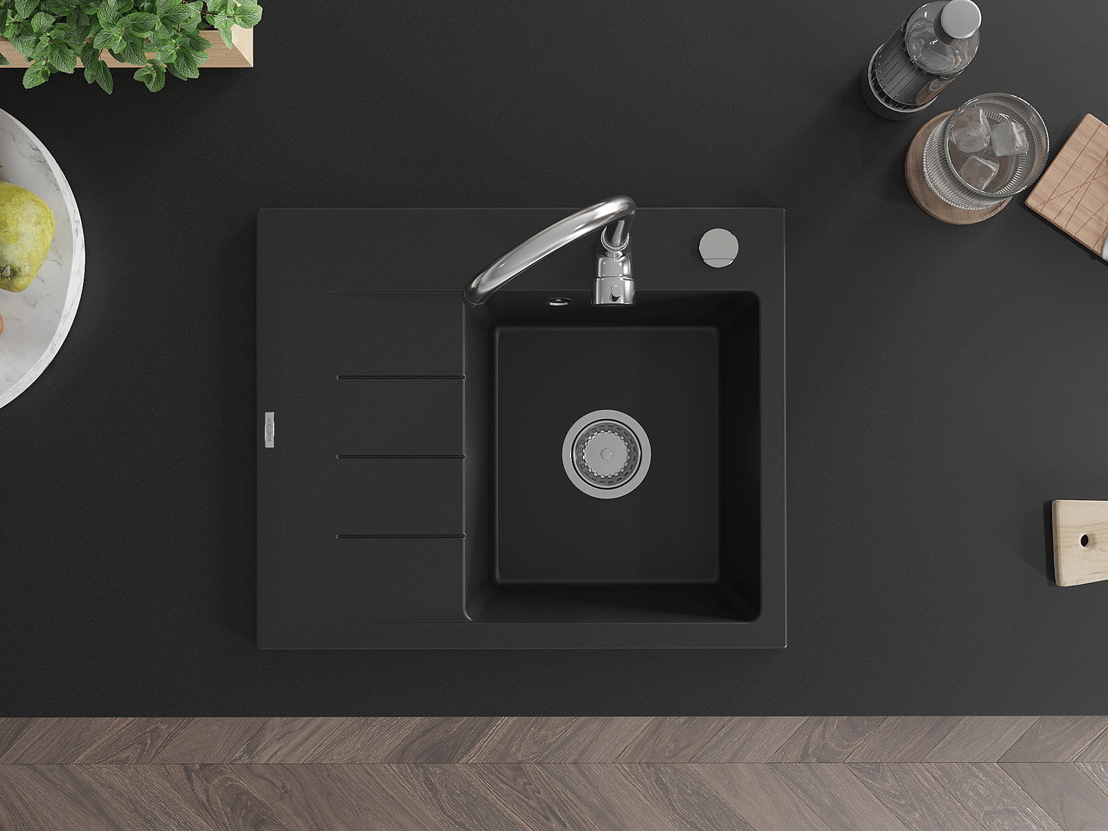Drez bol vyrobený z vysoko kvalitného granitu. Predstavuje elegantné, ale predovšetkým praktické doplnenie každej kuchyne, nezávisle od jej štýlu. Vysoká kvalita a trvácnosť granitu zaisťujú dlhodobé používanie.