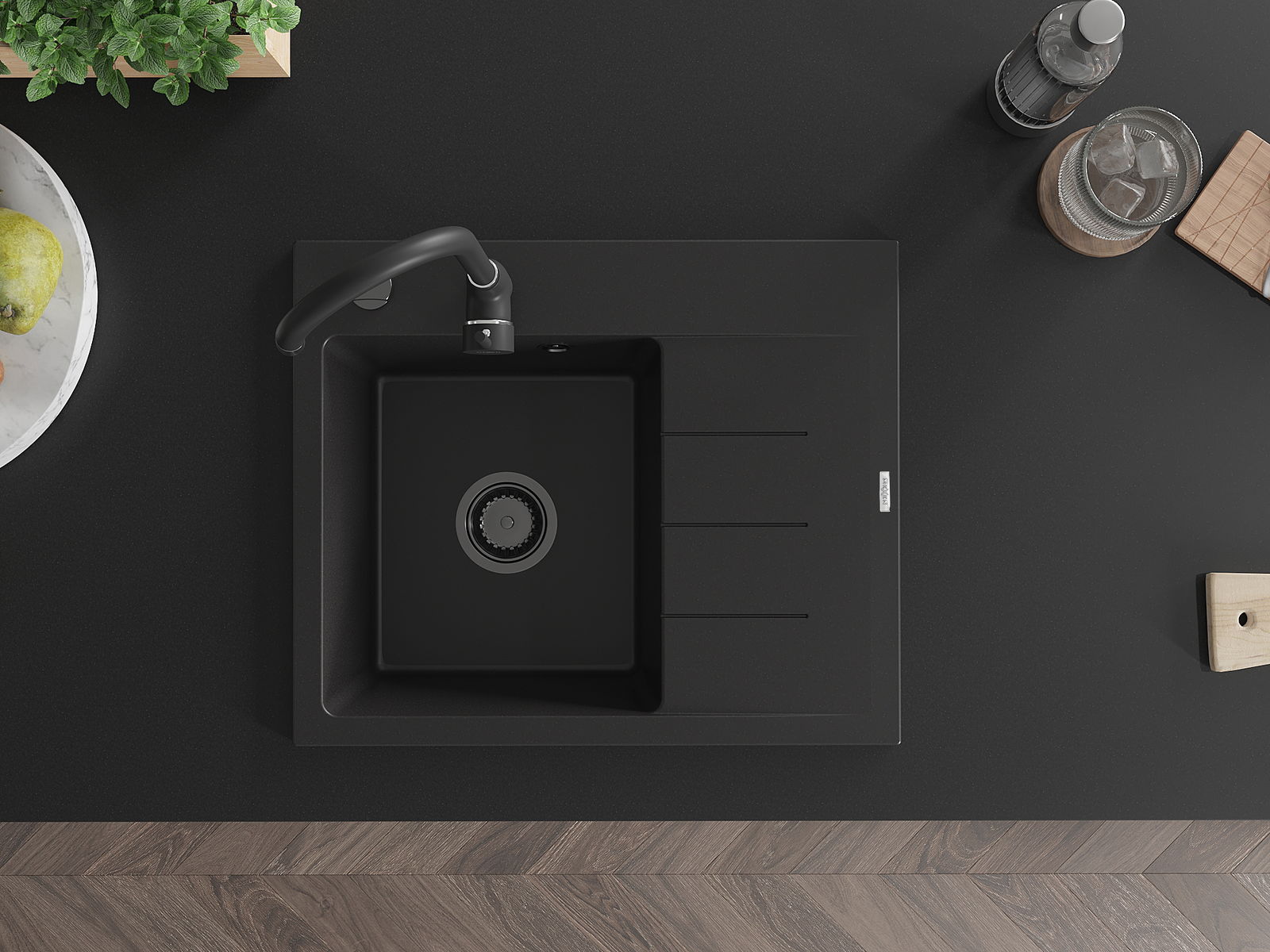 Povrch kuchynského drezu je odolný voči škvrnám a zafarbeniu, vďaka čomu sa ľahko udržiava a zachováva svoju farbu počas dlhého obdobia používania. Estetický a praktický doplnok pre každú kuchyňu.