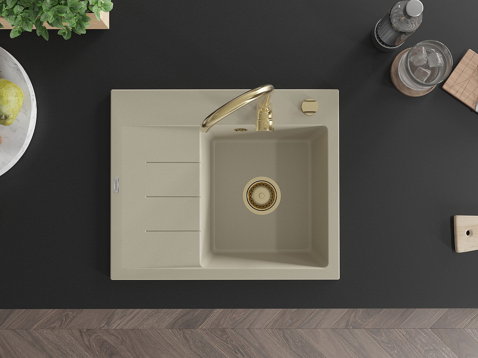Povrch kuchynského drezu je odolný voči škvrnám a zafarbeniu, vďaka čomu sa ľahko udržiava a zachováva svoju farbu počas dlhého obdobia používania. Estetický a praktický doplnok pre každú kuchyňu.