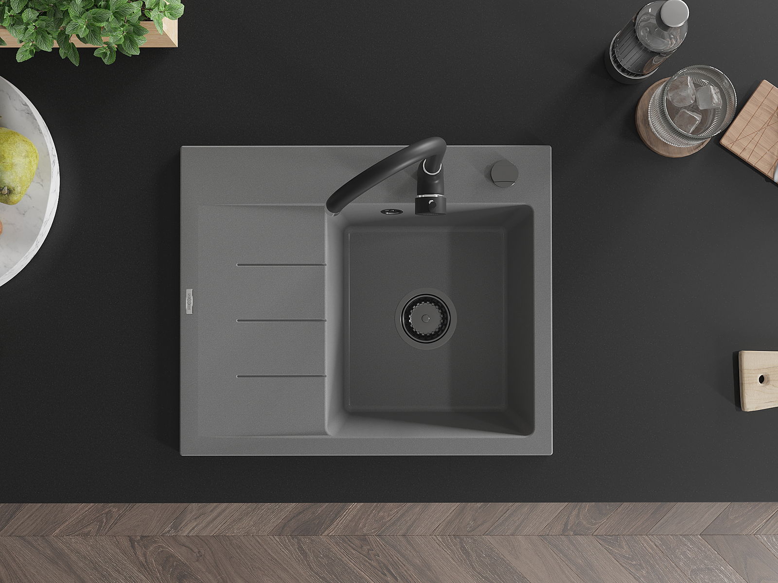 Povrch kuchynského drezu je odolný voči škvrnám a zafarbeniu, vďaka čomu sa ľahko udržiava a zachováva svoju farbu počas dlhého obdobia používania. Estetický a praktický doplnok pre každú kuchyňu.