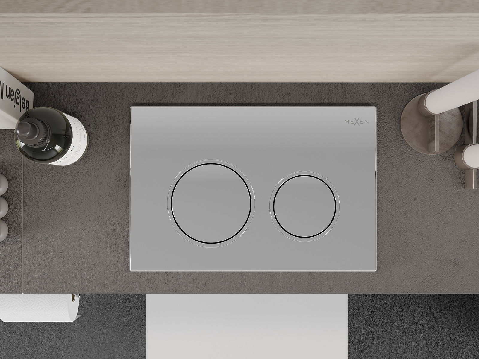 Tlačidlo je určené pre rámy Mexen zo série XS. Môže byť namontované ako spredu, tak aj zhora rámu, čo zvyšuje jeho univerzálnosť. Takéto riešenie uľahčuje inštaláciu v rôznych montážnych podmienkach. Vďaka tomu je obsluha splachovania pohodlná a intuitívna.