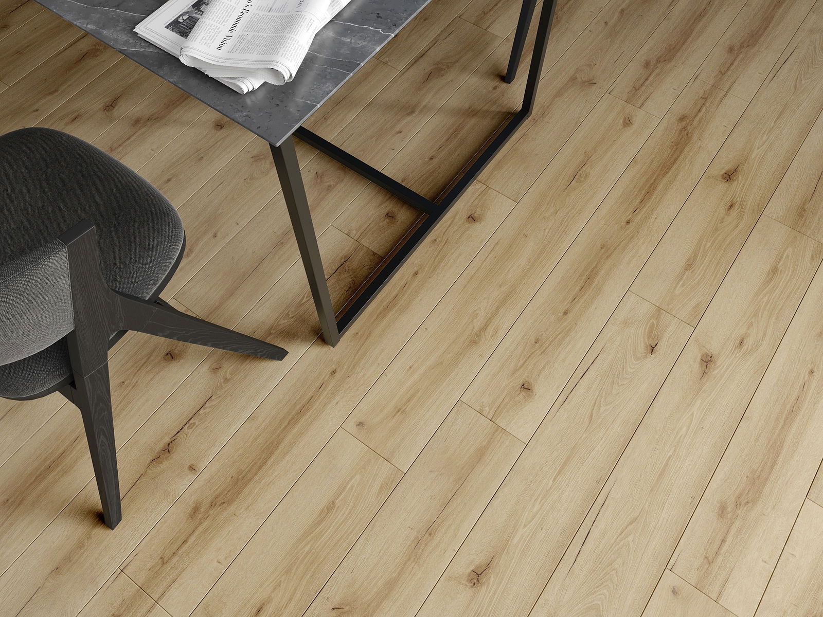 Panely majú 4-strannú škáru - každá strana bola vyfrézovaná takým spôsobom, že po položení vznikne spojenie v tvare písmena V. Tento dizajn spôsobuje, že podlaha nadobudne výraznejšiu štruktúru, čo jej dodáva hĺbku a estetický charakter. Tento efekt je obzvlášť cenený v moderných aranžmánoch, kde detaily zdôrazňujú výnimočný vzhľad interiéru.
