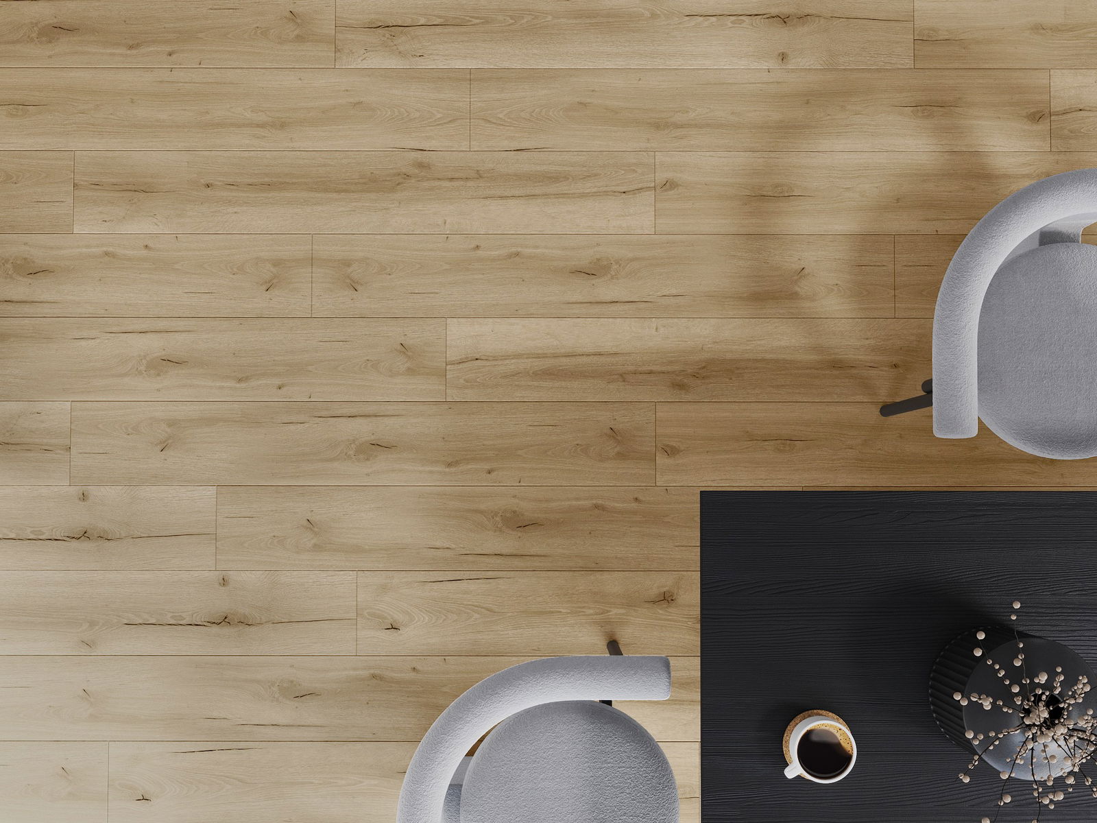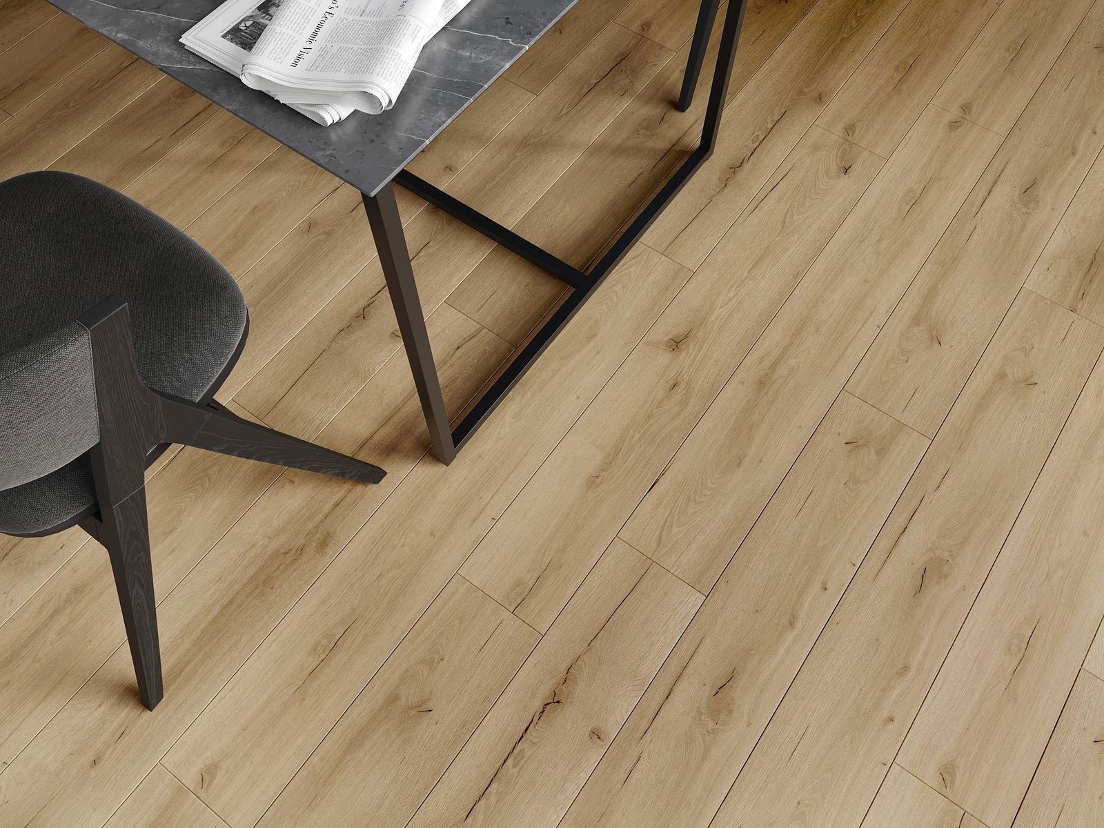 Panely majú 4-strannú škáru - každá strana bola vyfrézovaná takým spôsobom, že po položení vznikne spojenie v tvare písmena V. Tento dizajn spôsobuje, že podlaha nadobudne výraznejšiu štruktúru, čo jej dodáva hĺbku a estetický charakter. Tento efekt je obzvlášť cenený v moderných aranžmánoch, kde detaily zdôrazňujú výnimočný vzhľad interiéru.