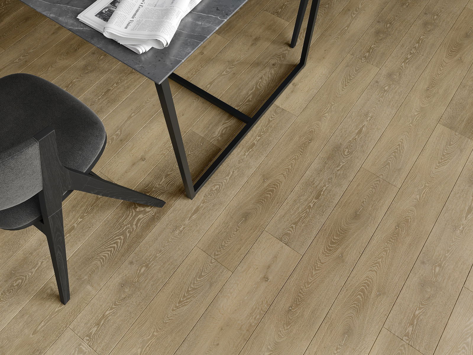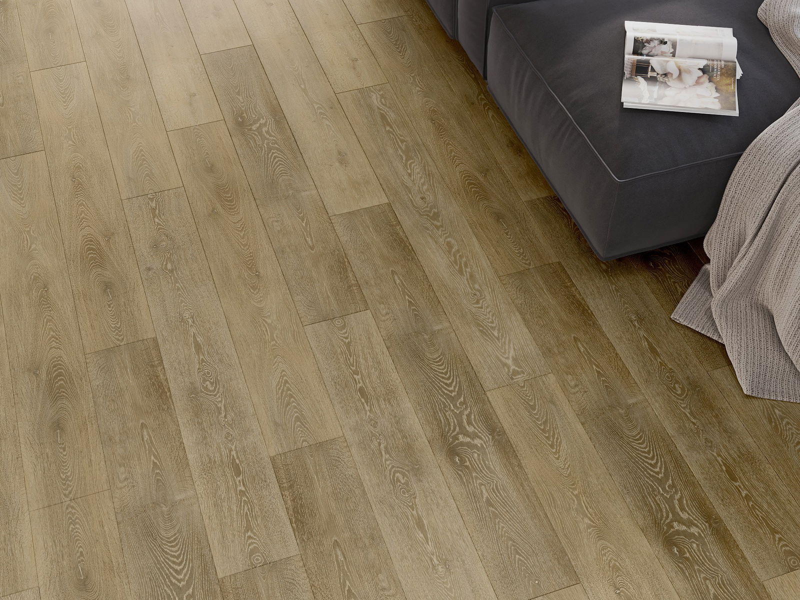 Panely majú 4-strannú škáru - každá strana bola vyfrézovaná takým spôsobom, že po položení vznikne spojenie v tvare písmena V. Tento dizajn spôsobuje, že podlaha nadobudne výraznejšiu štruktúru, čo jej dodáva hĺbku a estetický charakter. Tento efekt je obzvlášť cenený v moderných aranžmánoch, kde detaily zdôrazňujú výnimočný vzhľad interiéru.
